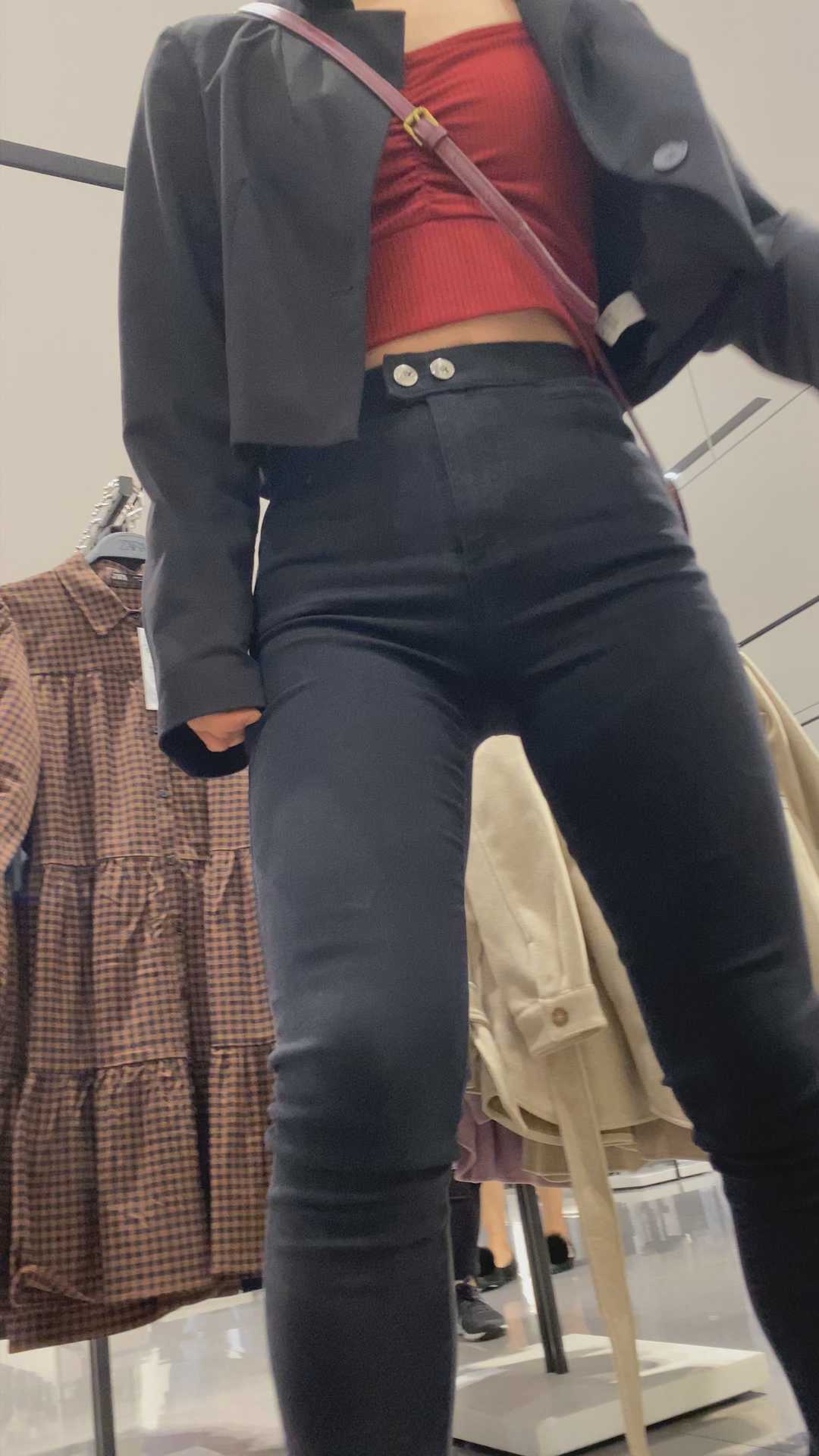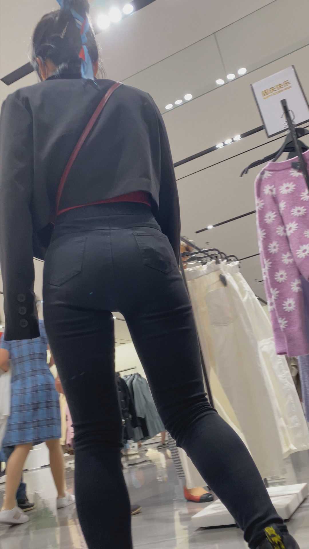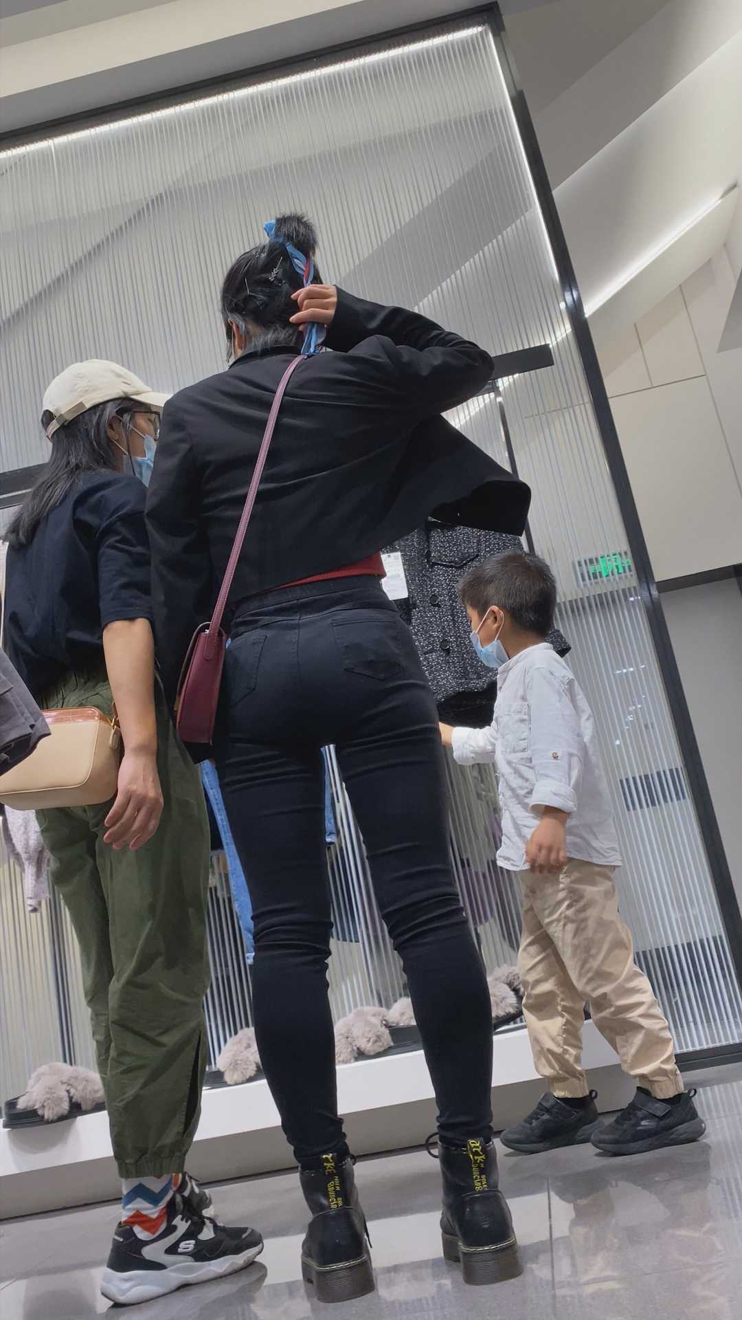 B1317紧身黑裤突起的三角区