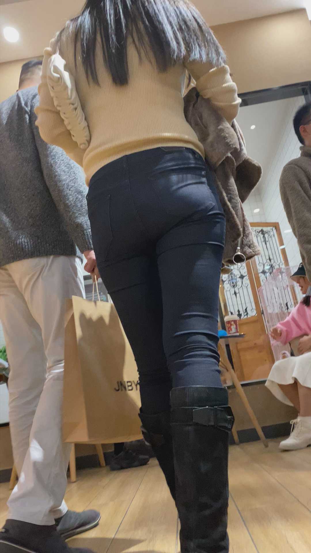 B1418饱满紧身黑裤子美女