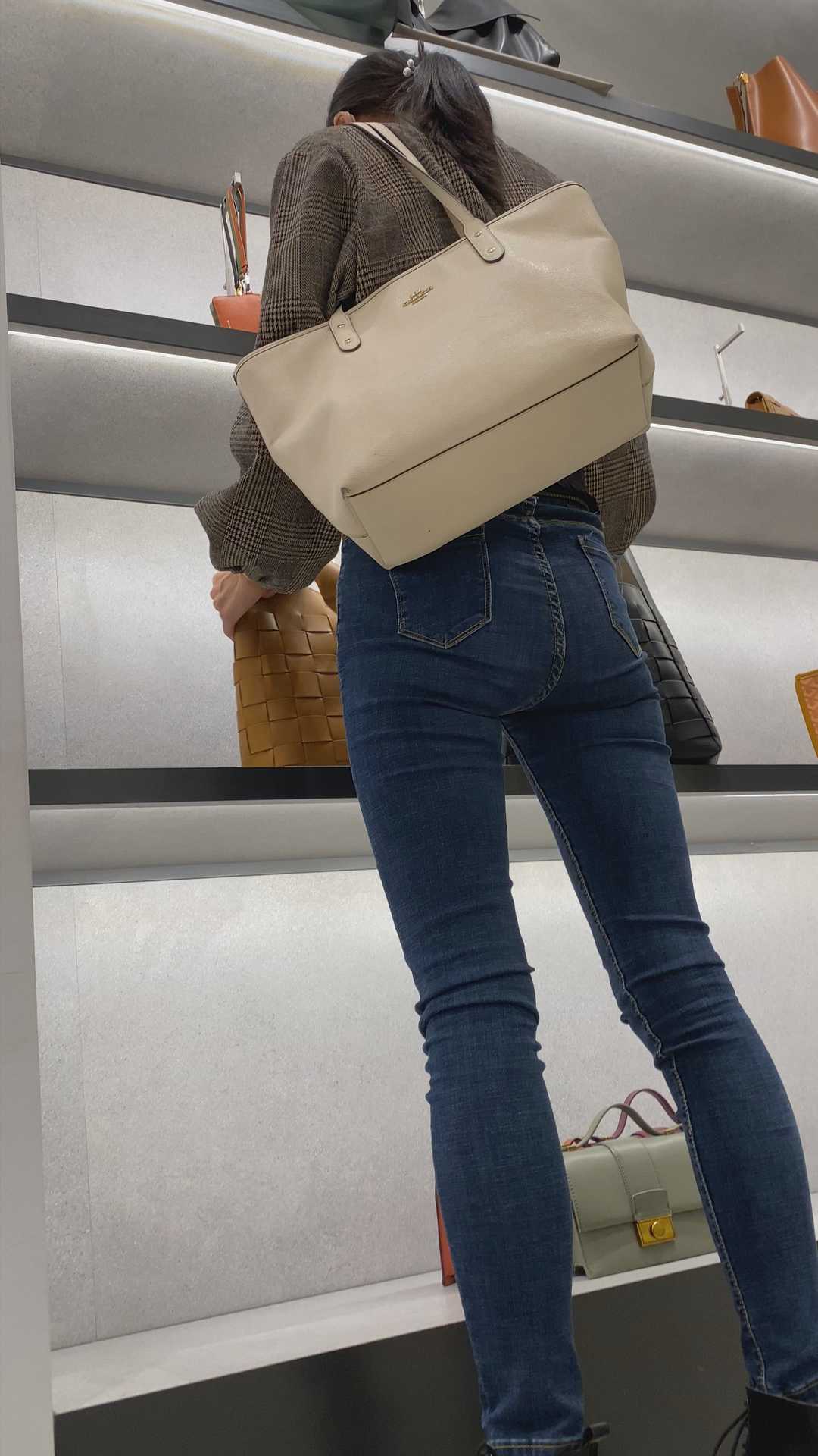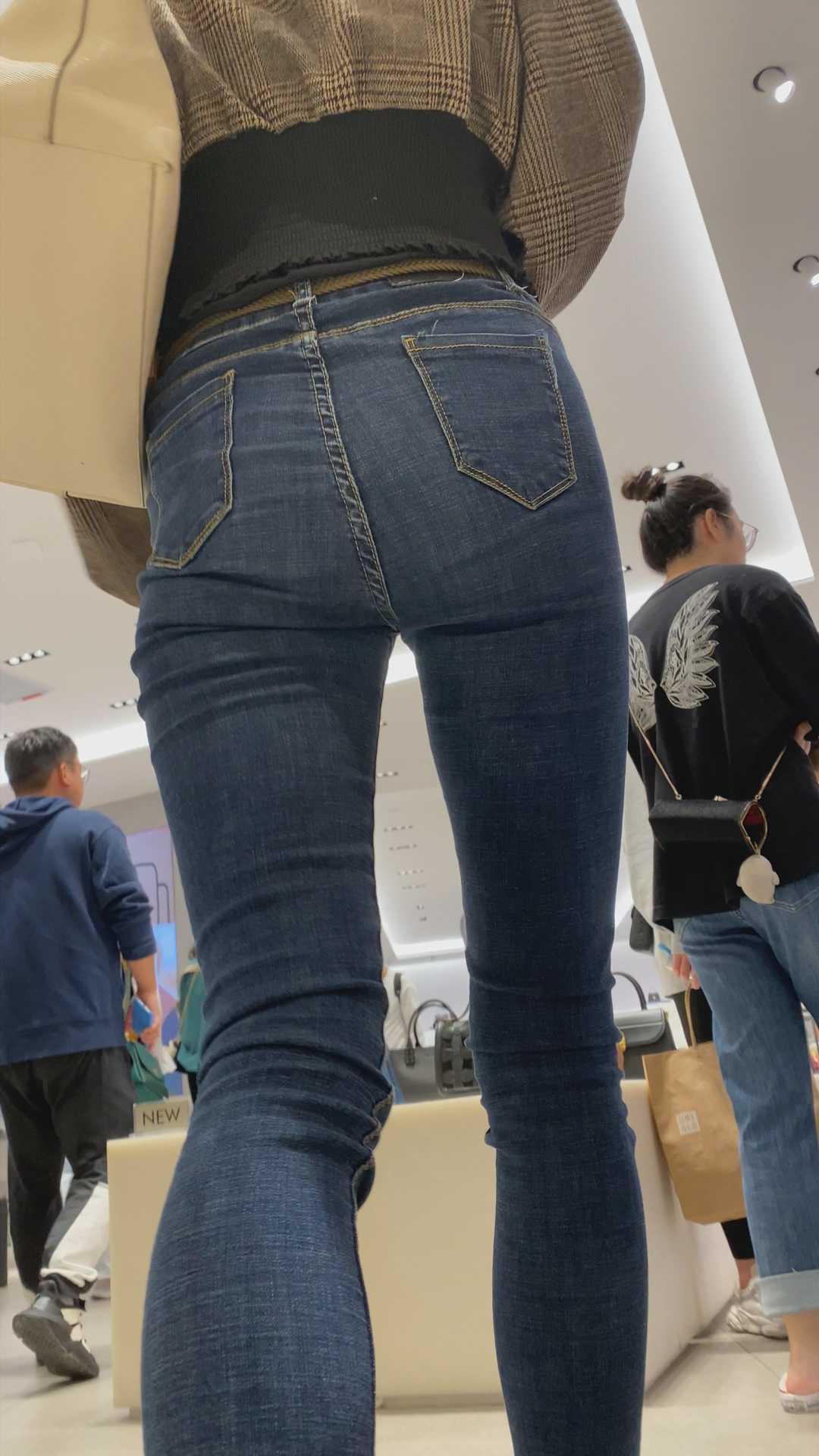 B1437高挑蓝牛紧身包臀少妇