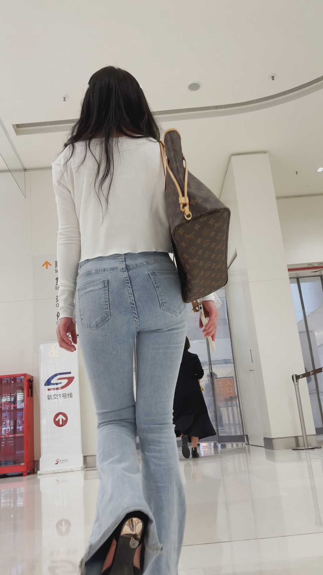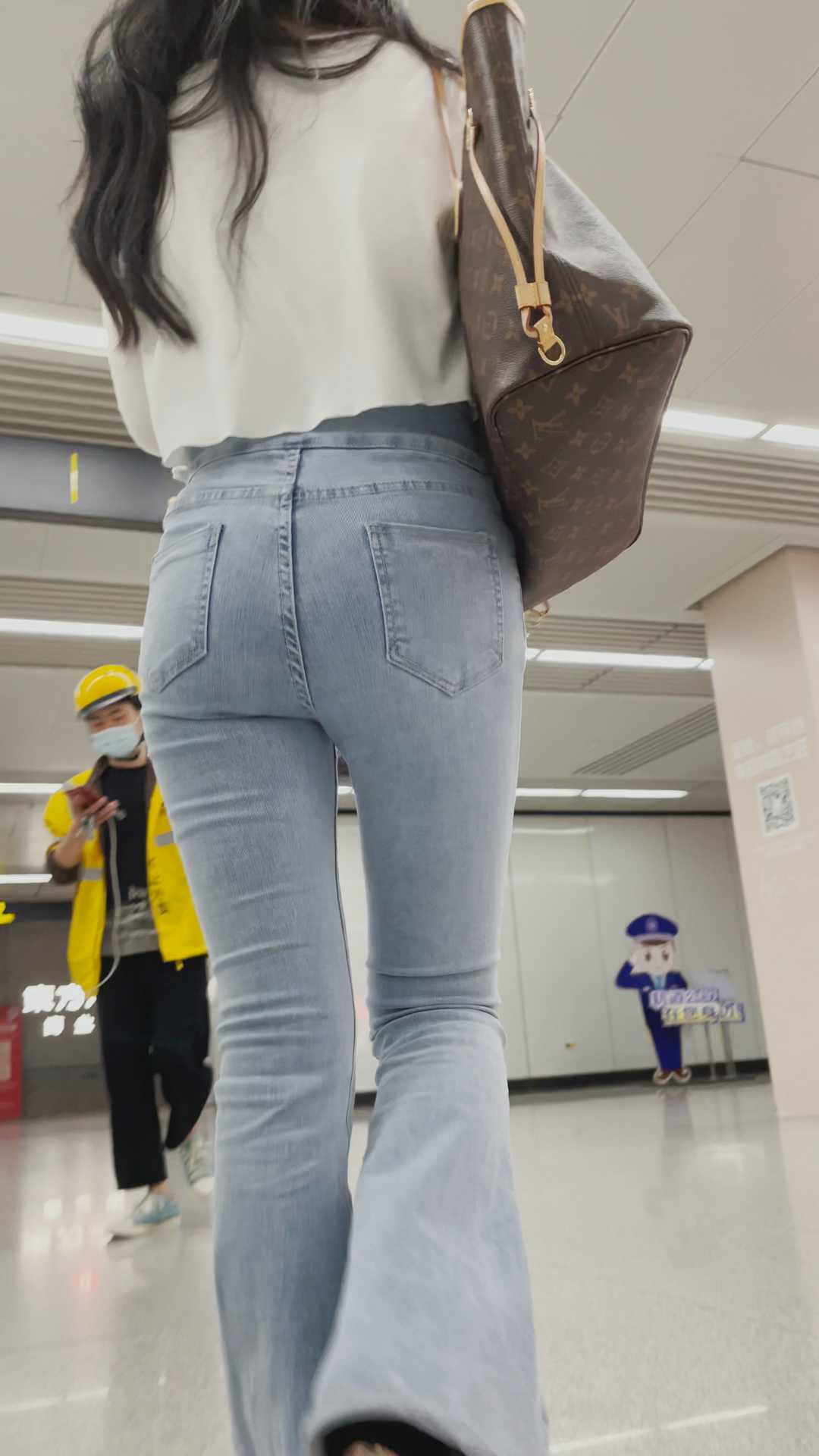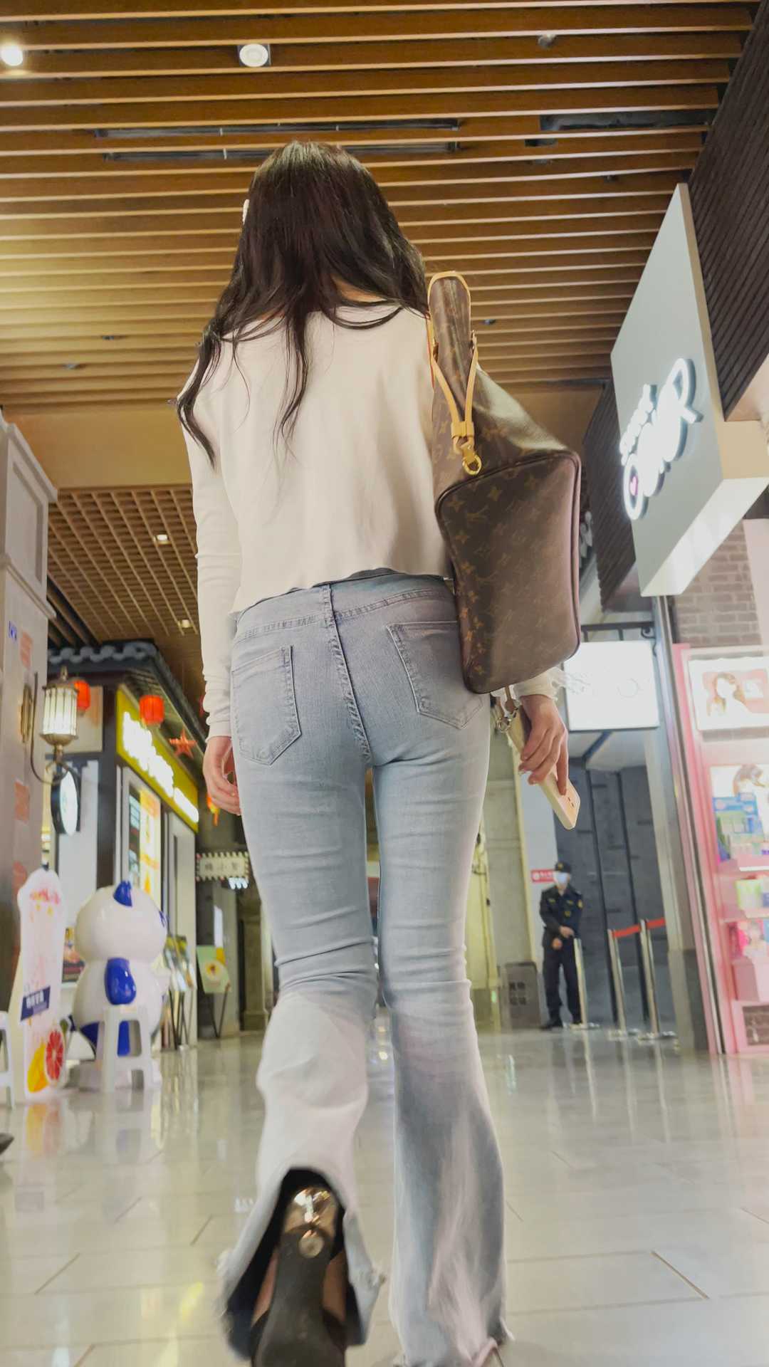 B1451高跟白牛仔喇叭裤小妹