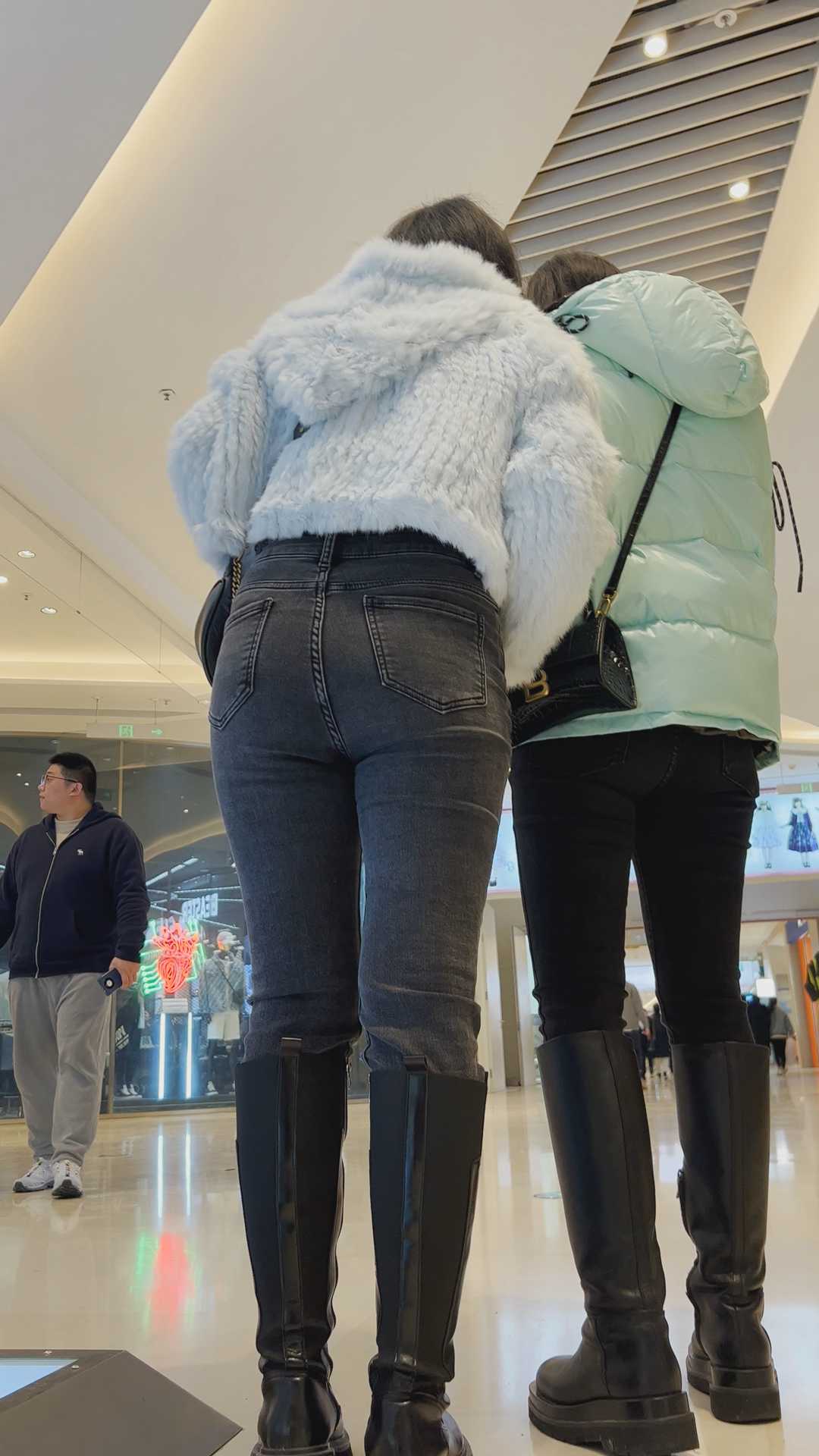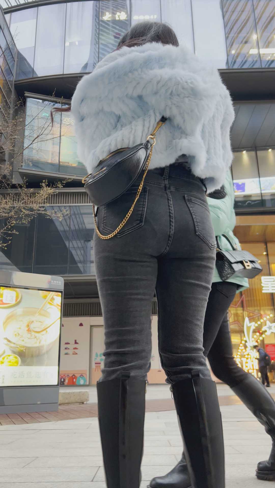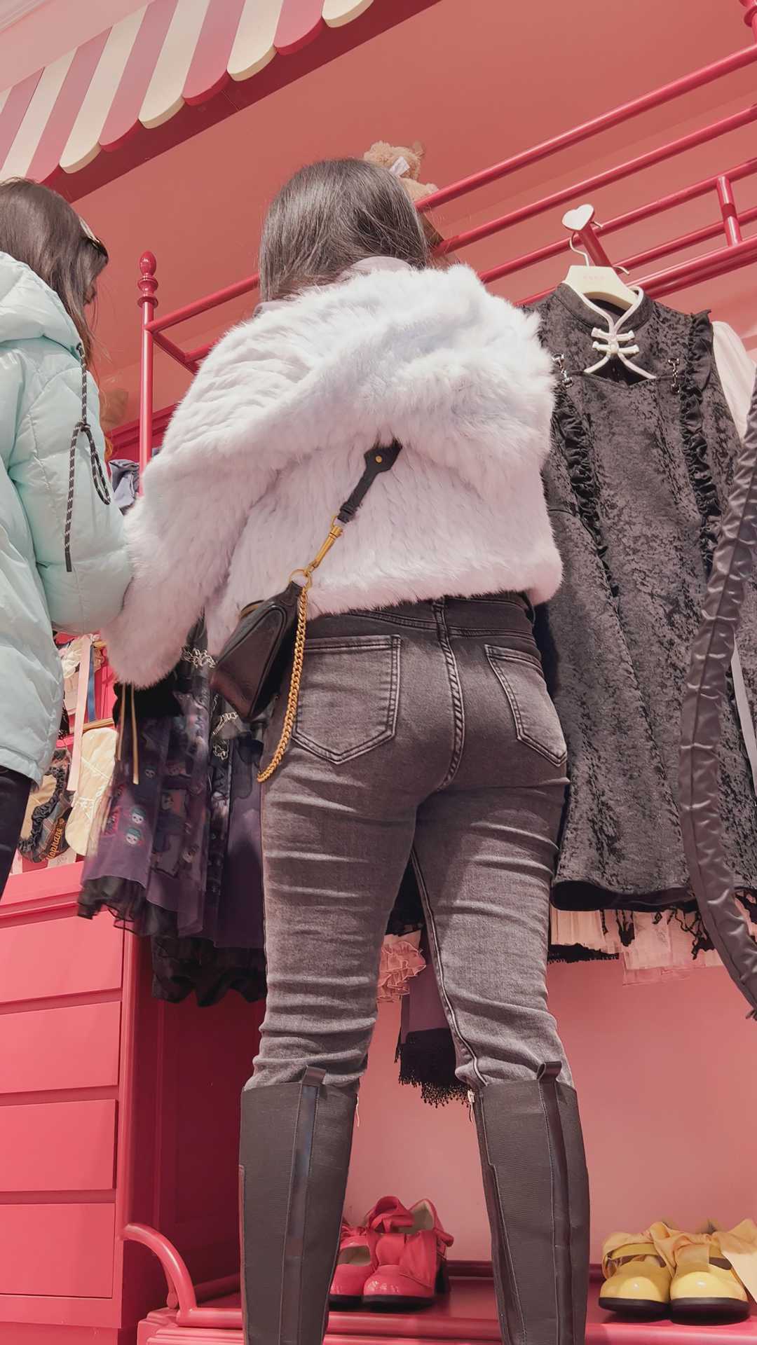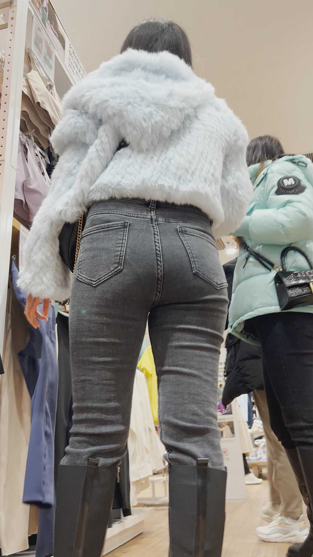 B1470黑牛仔紧臀金三角妹子