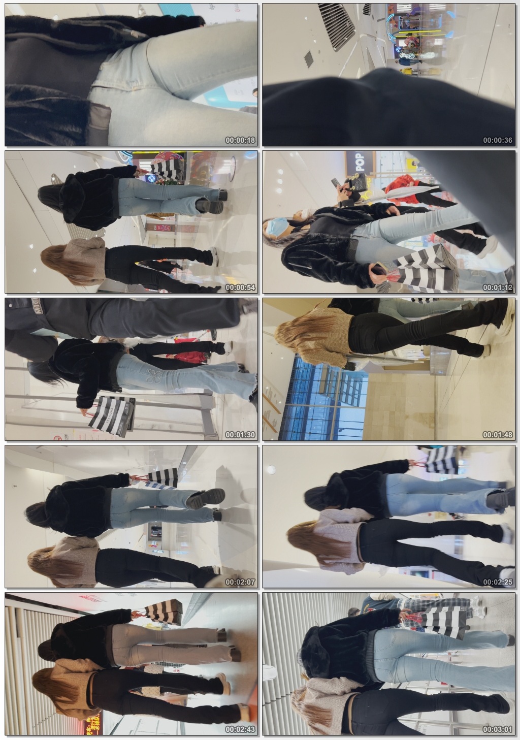 B1474黑牛仔裤与蓝色牛仔裤两妹子