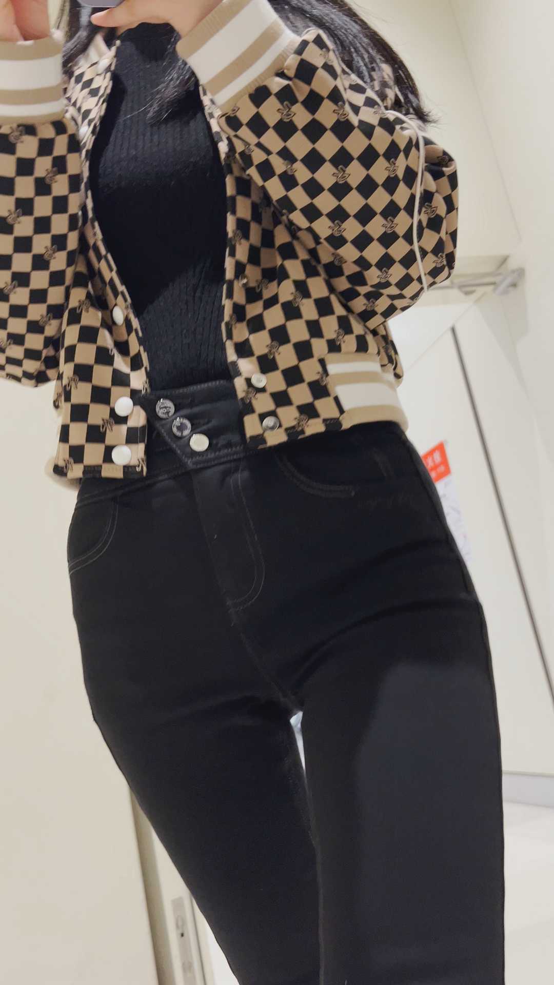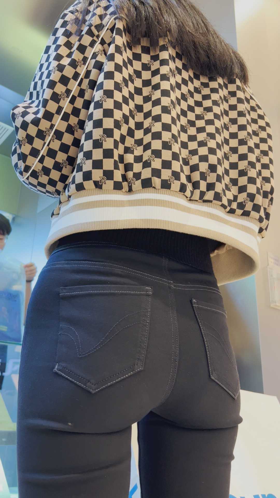 B41性感黑裤深沟牛仔美女
