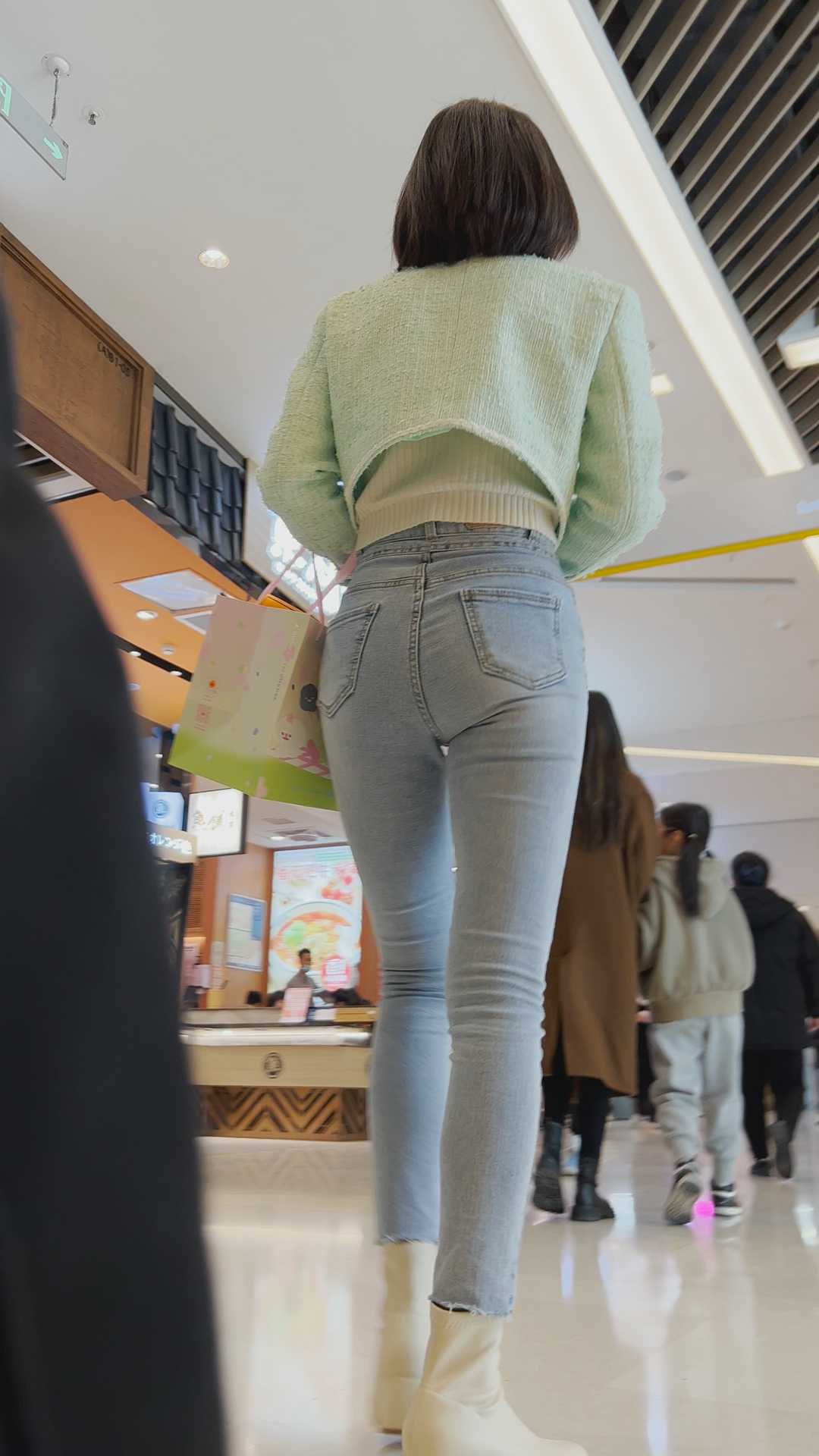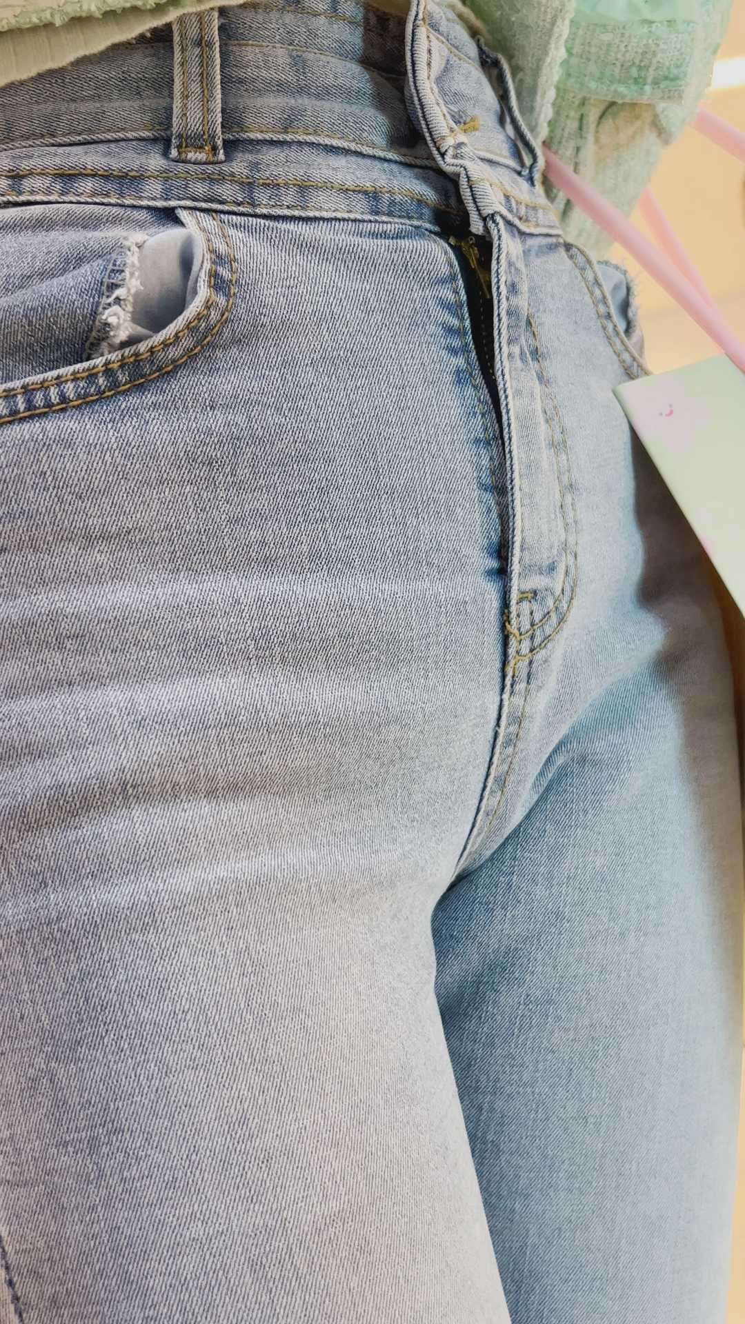 B48蓝色牛仔紧臀金三角美女