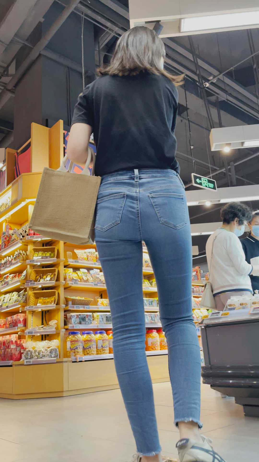 B89包臀牛仔长腿发长妹子