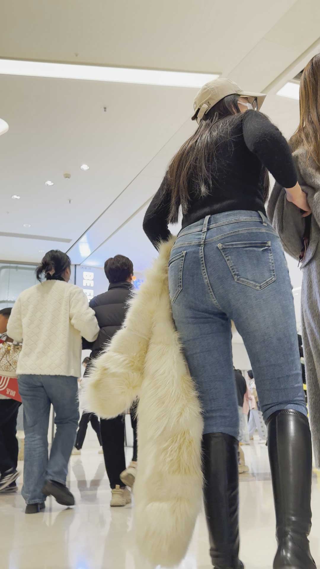 B215商场高挑包臀牛仔妹子