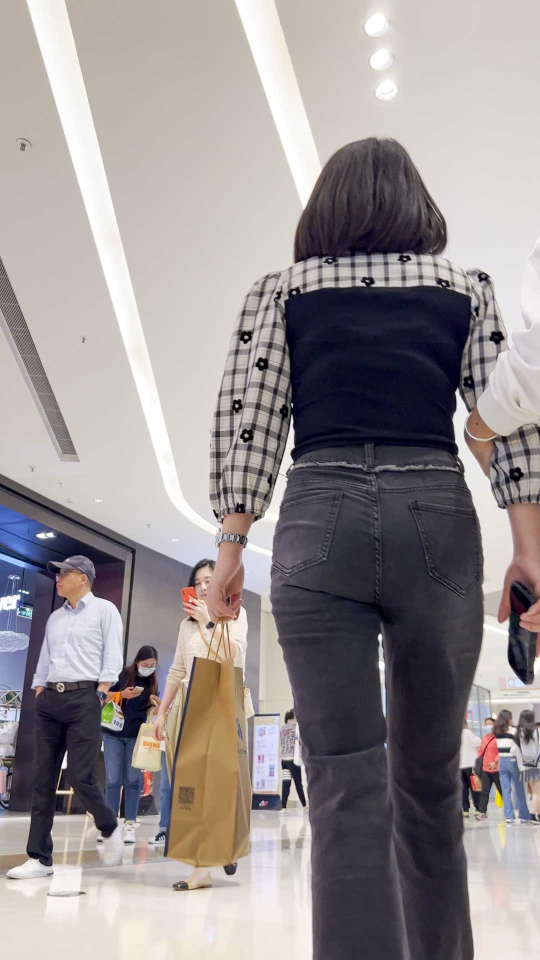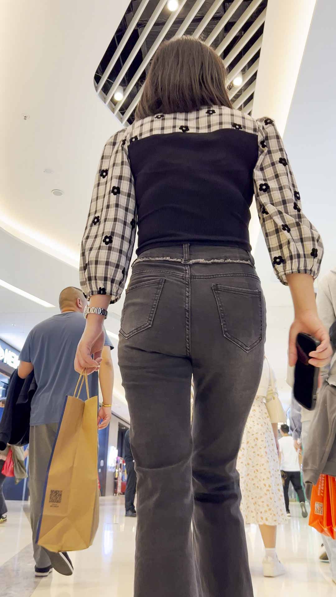 B219商场黑牛仔包臀少妇
