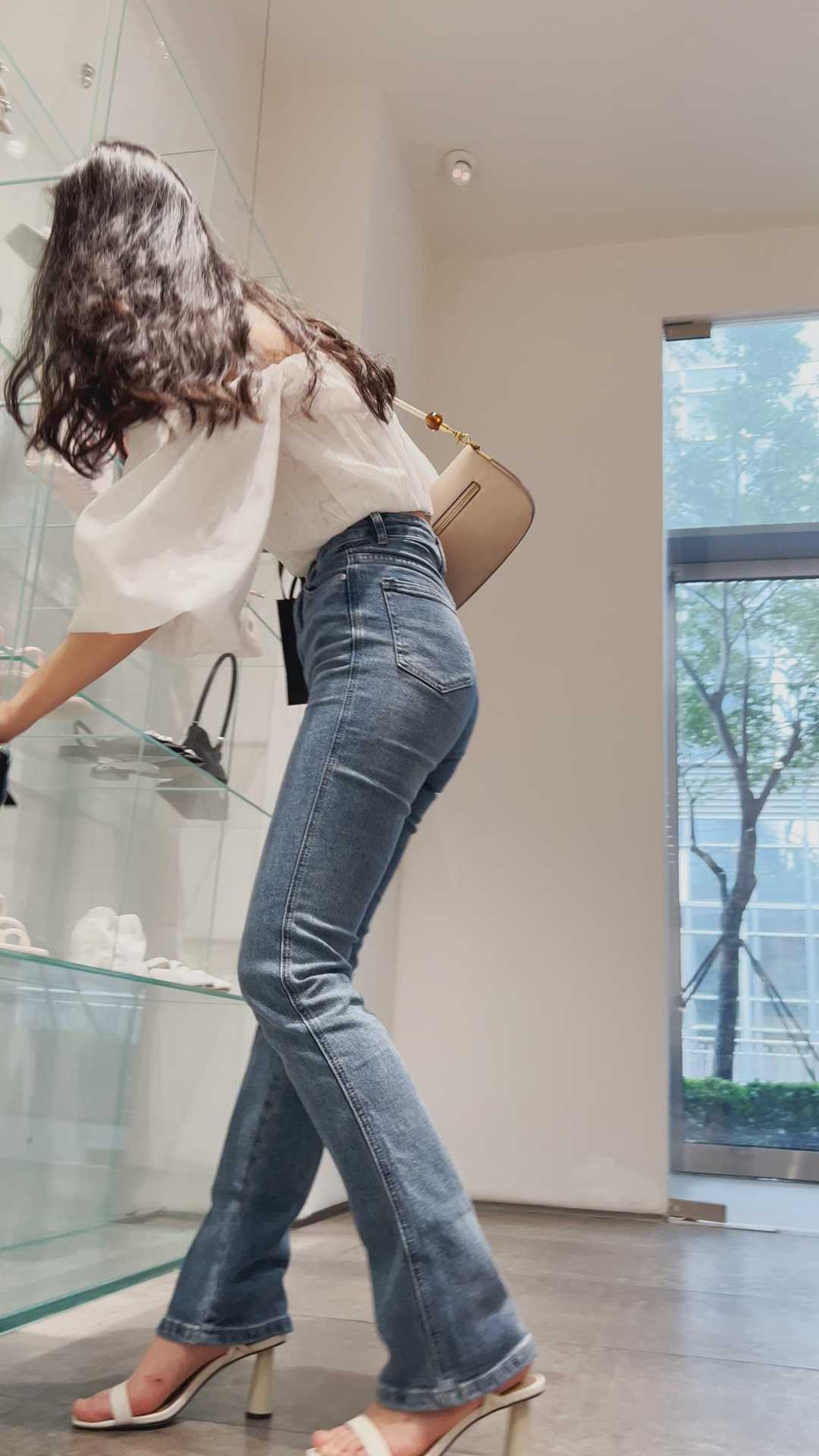 B361性感长发金三角牛仔小姐姐