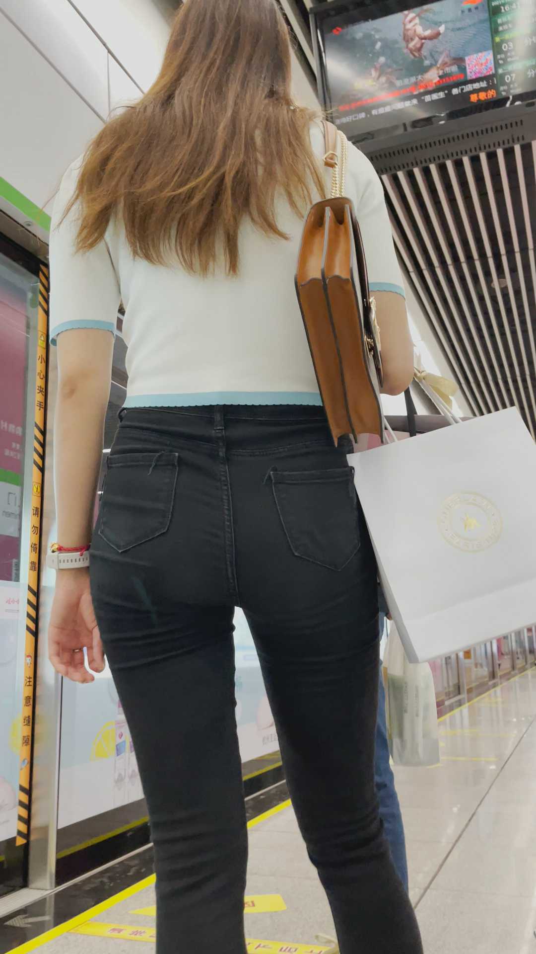 B454极品黑牛仔苹果臀长发小姐姐