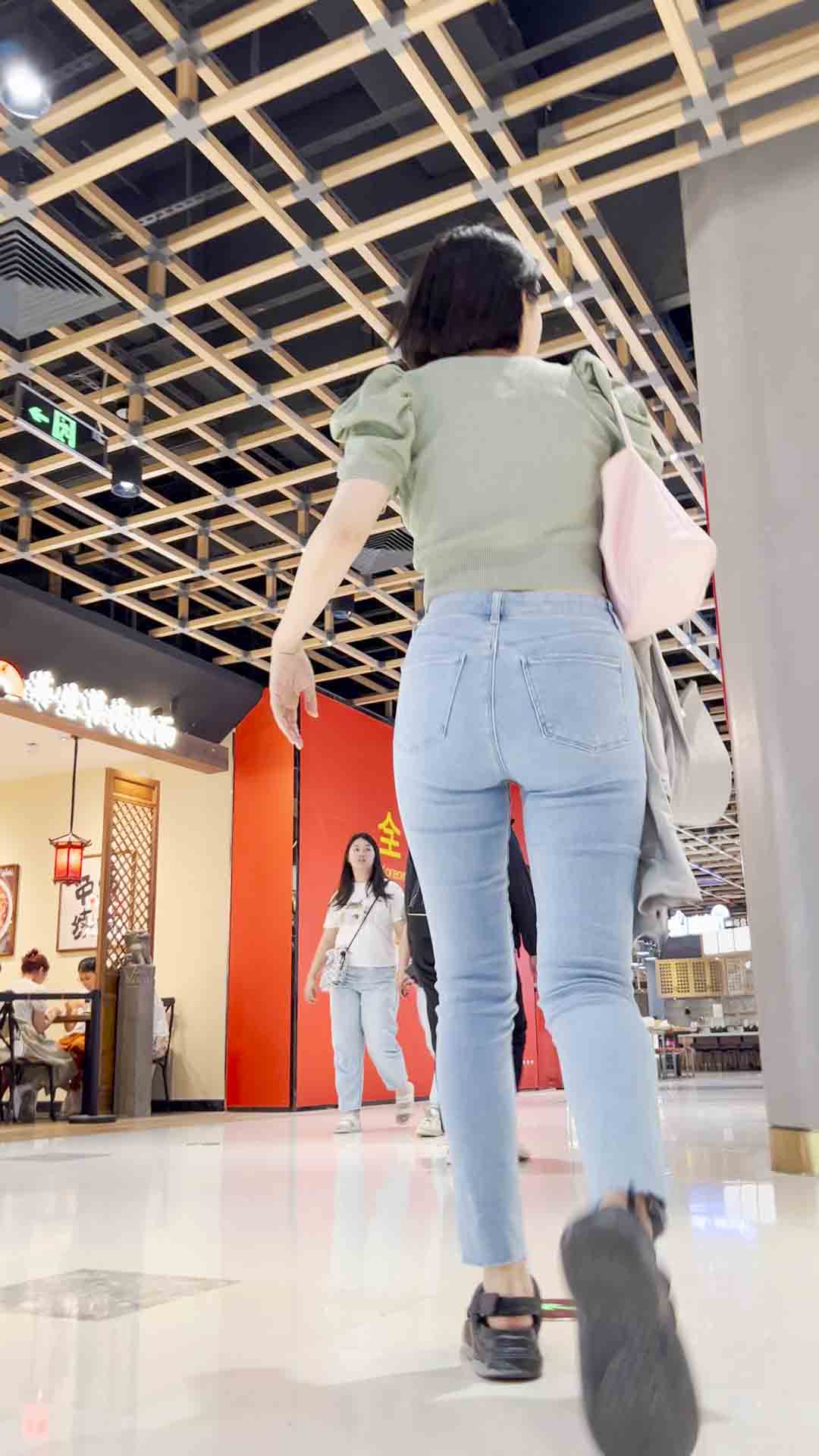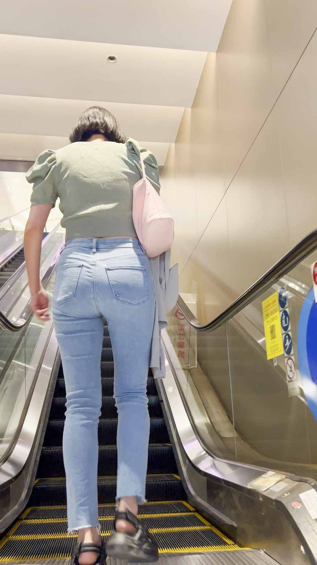B730超紧牛仔翘臀短发少妇