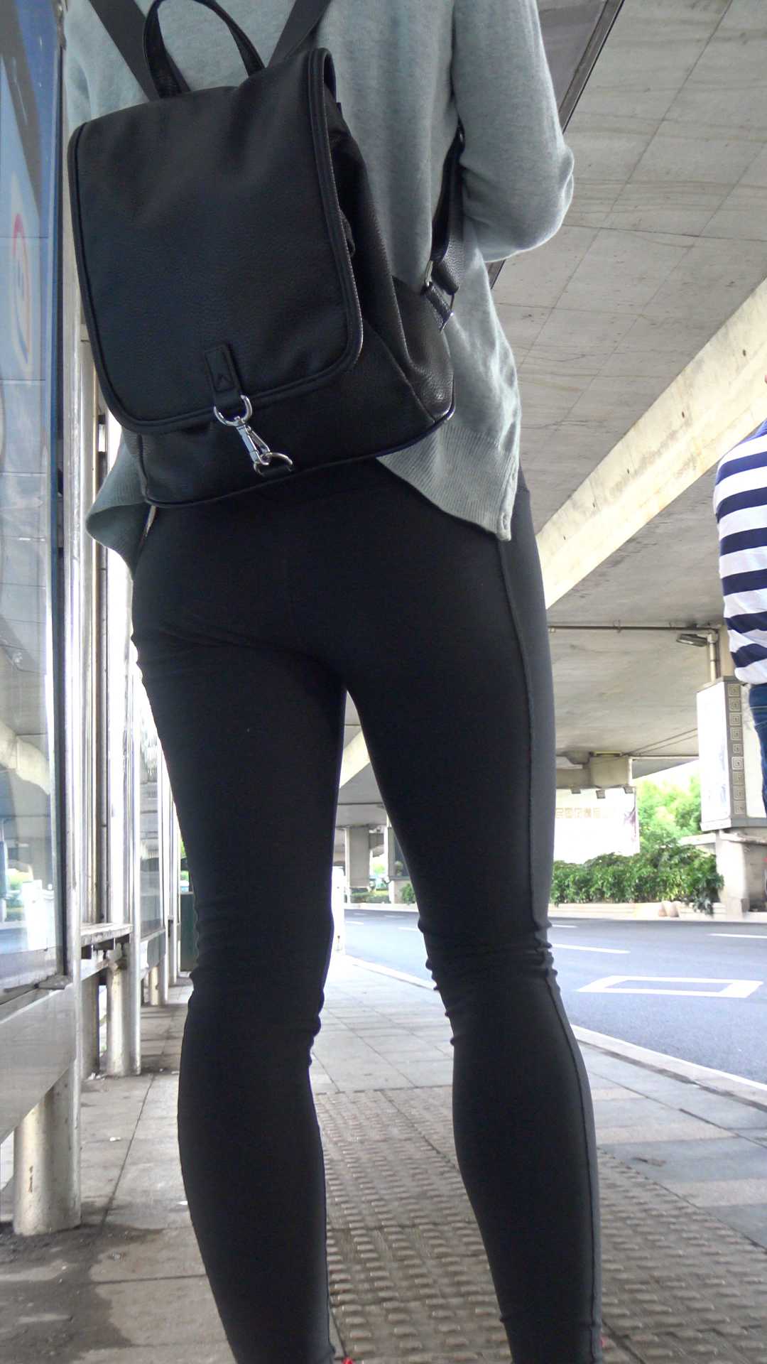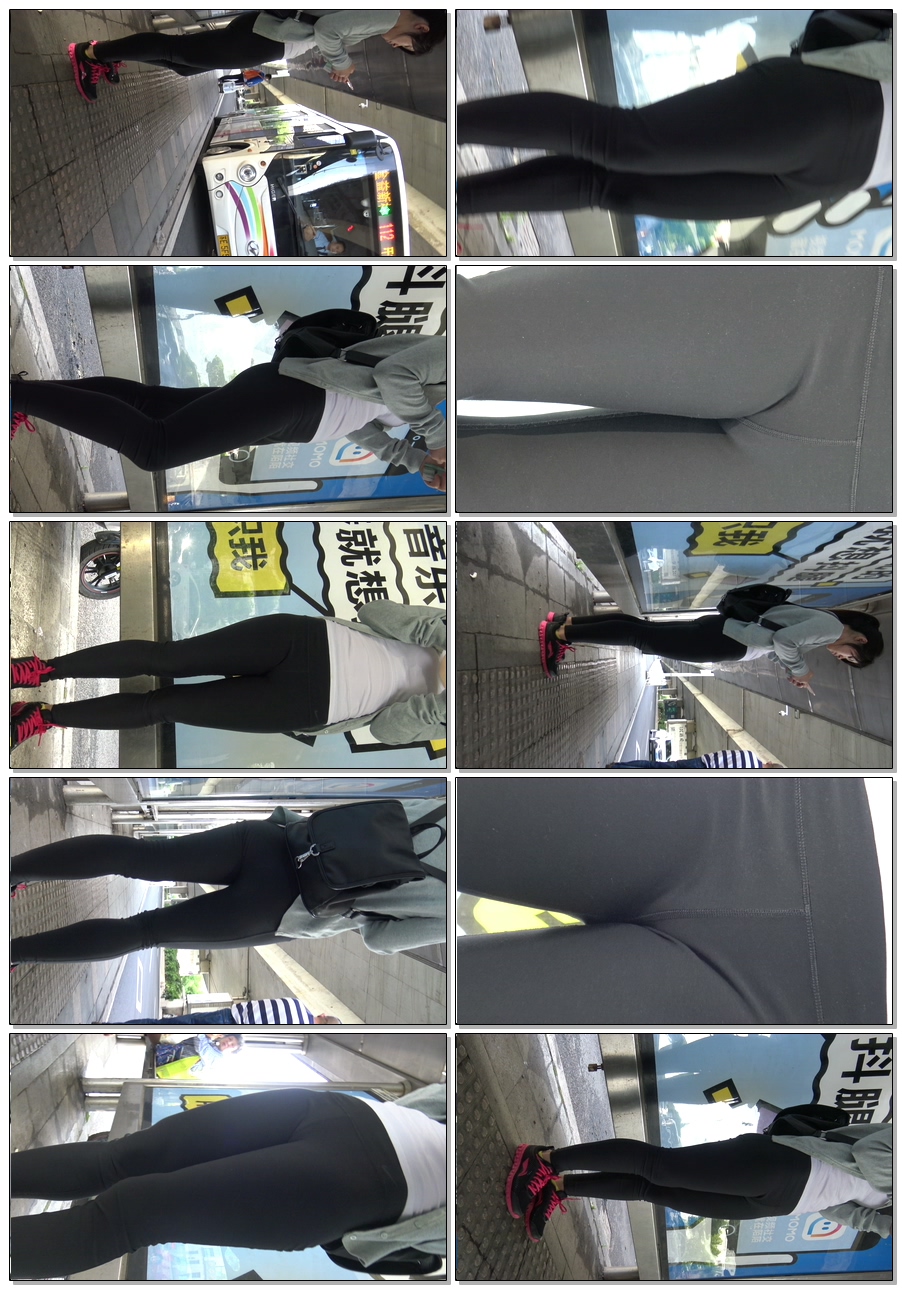 C392公交站健美裤小妹三角特写