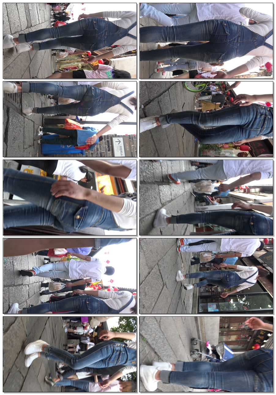C436古街背带牛仔裤少妇