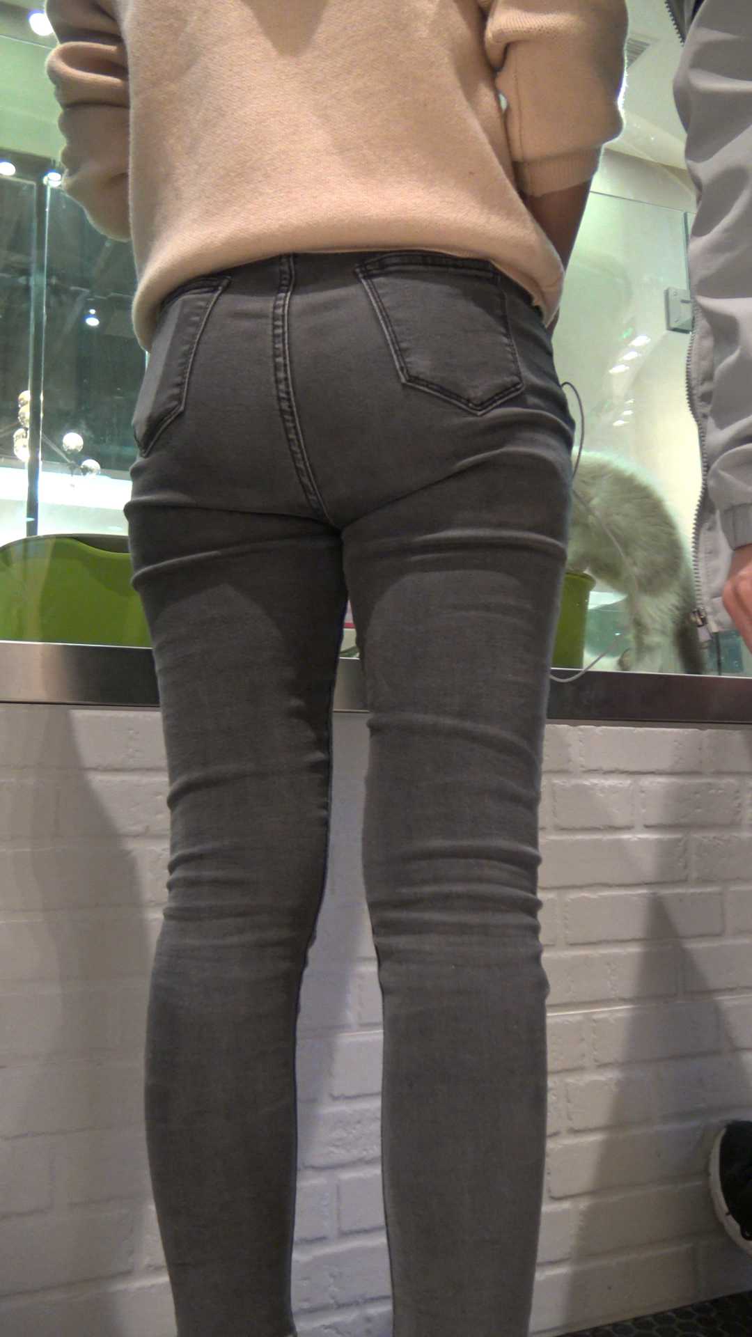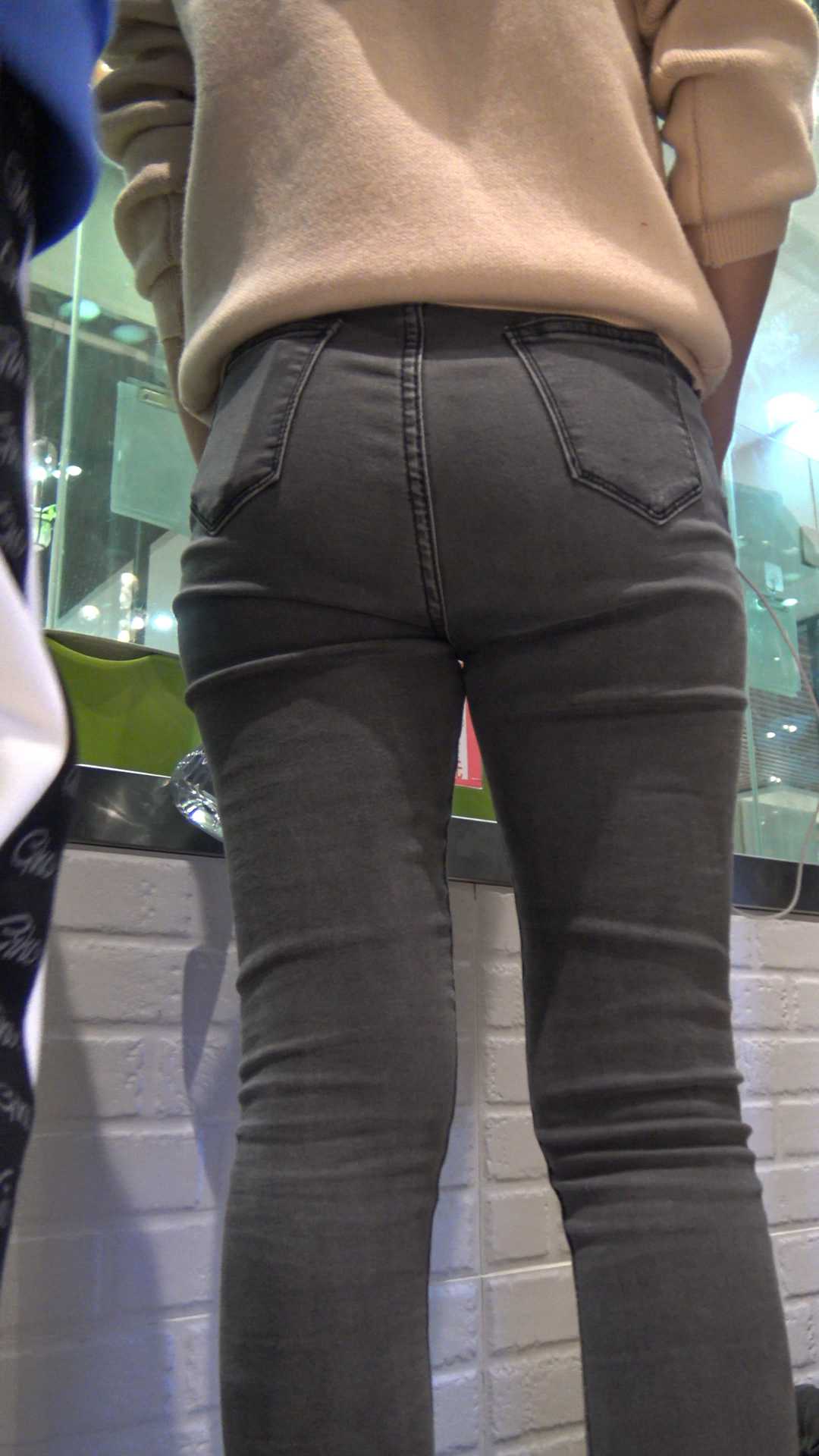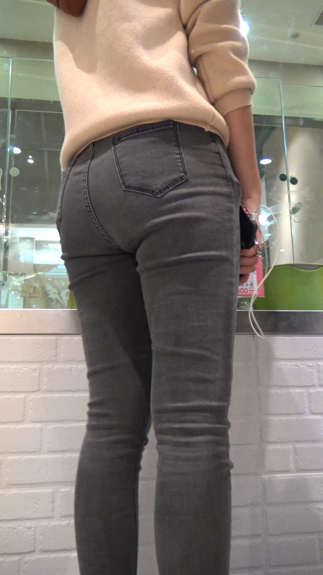 C472商场灰牛仔裤包臀少女