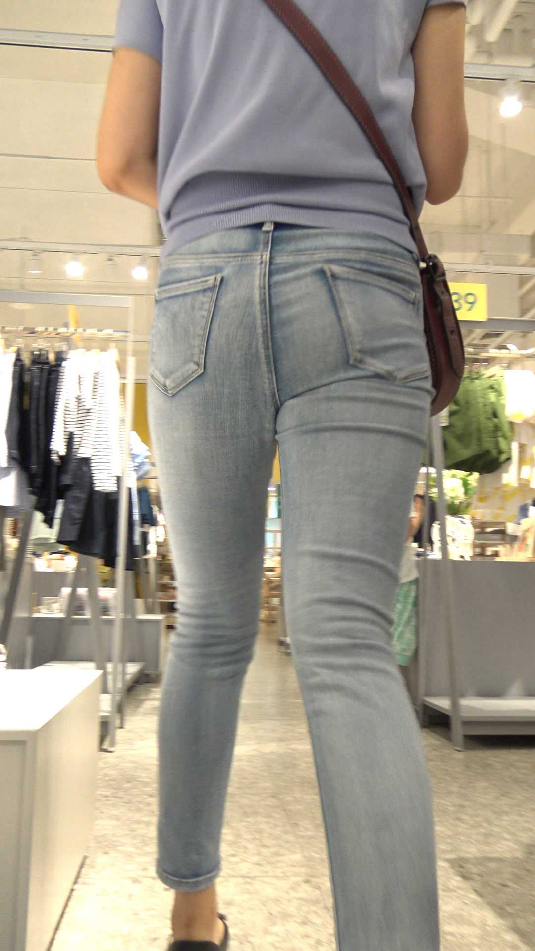 C503商场紧身灰牛仔美臀美女