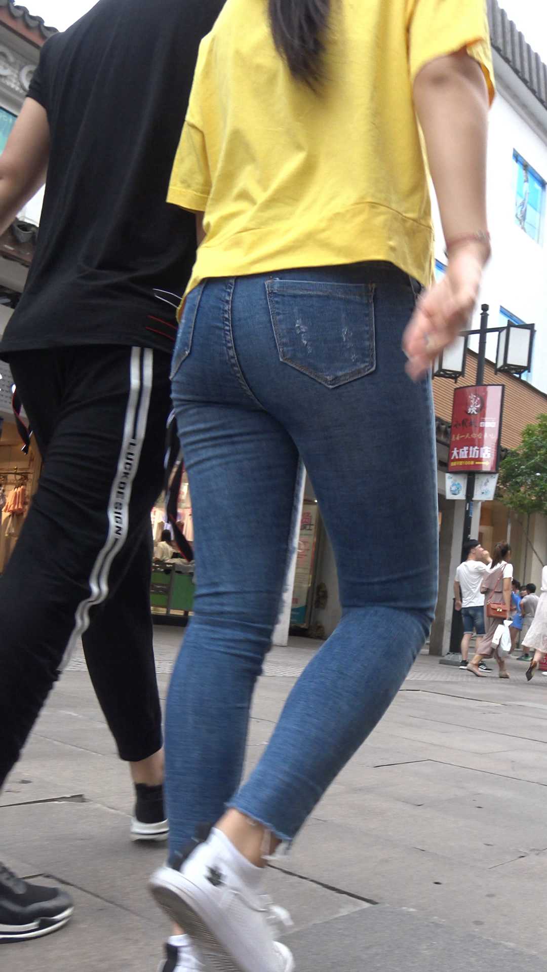 C596就算是工作日,购物街也能遇到牛仔紧身裤