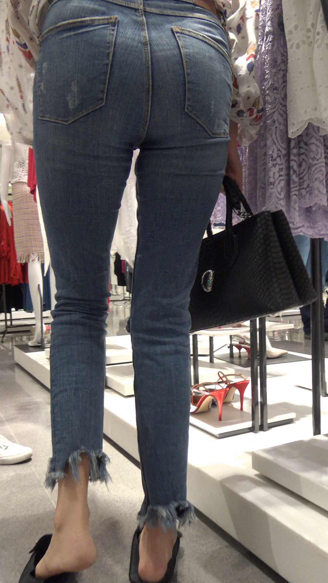 C673服装店紧身包臀牛仔长腿少女