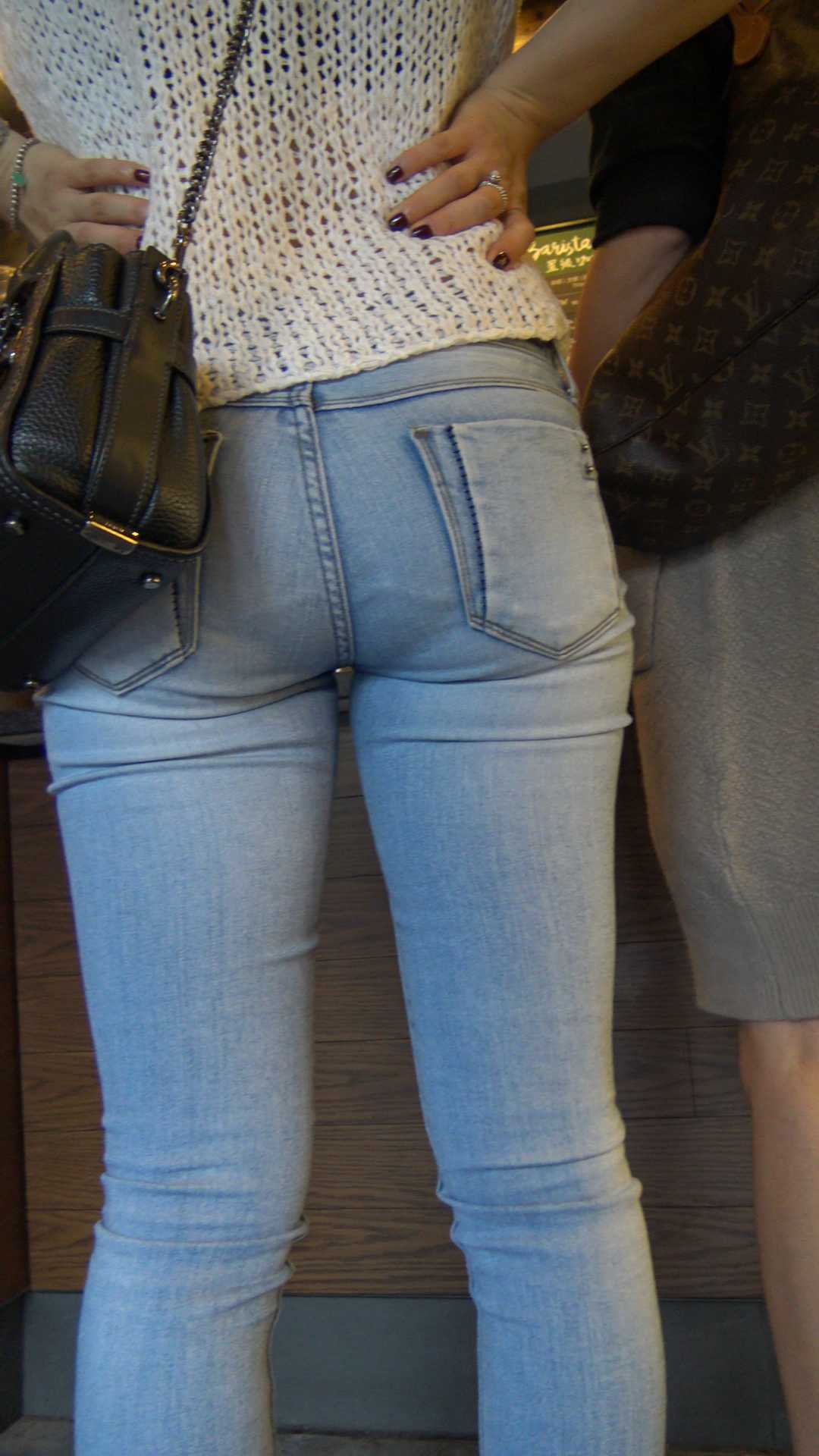 C718极品牛仔裤巨臀紧内痕美女