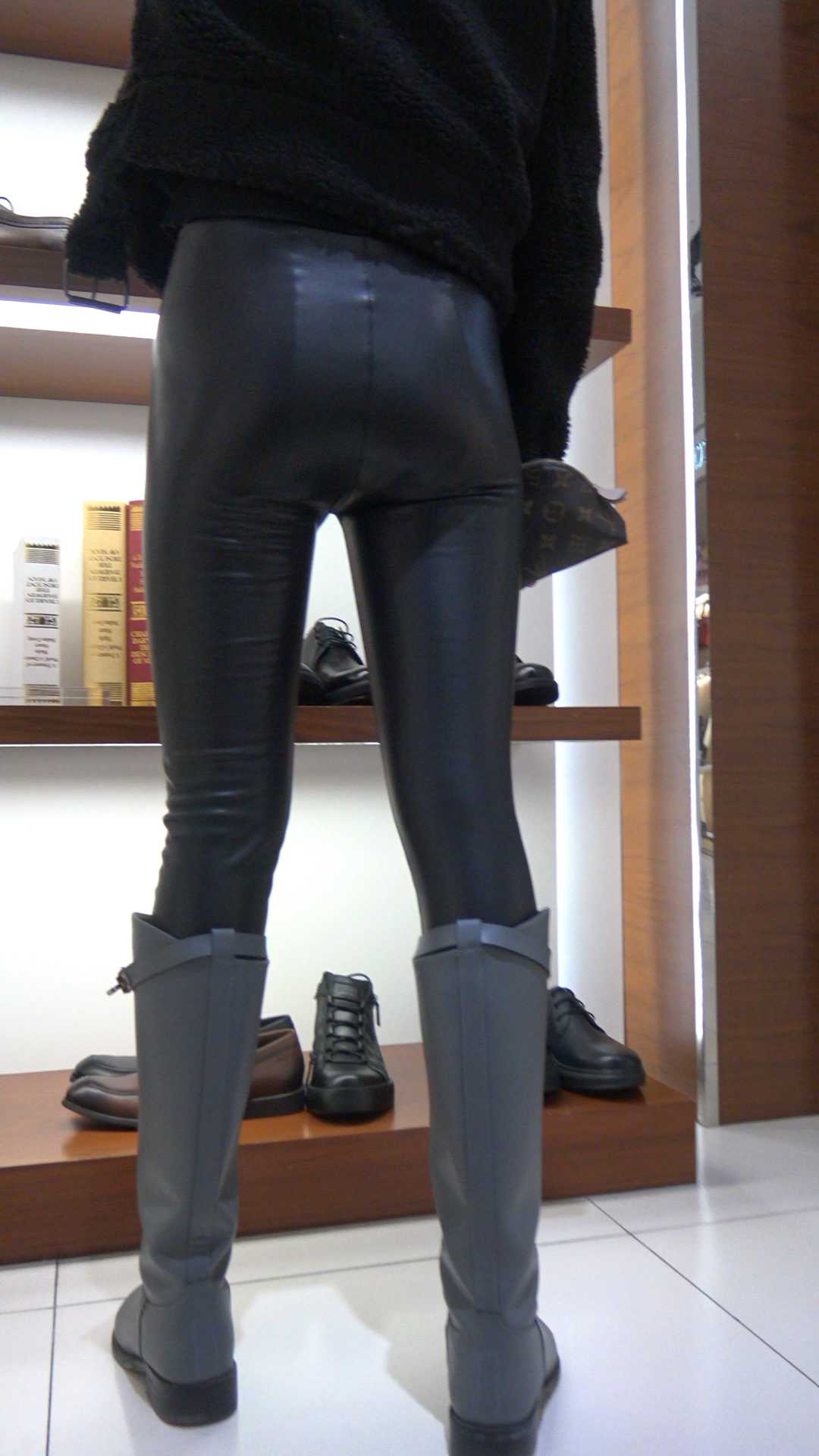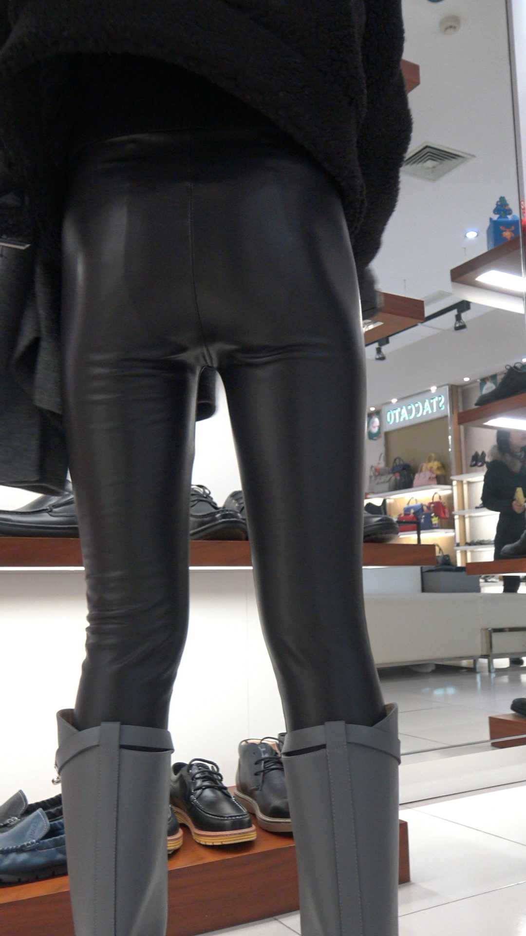 C723极品皮裤少妇买鞋子