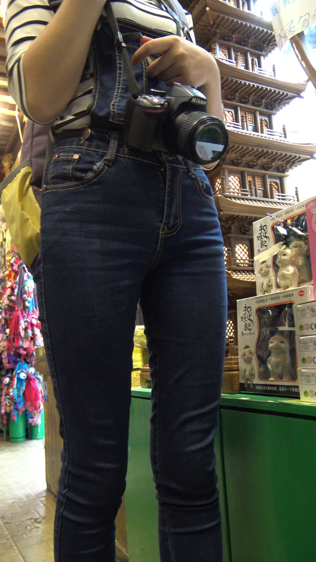 C860紧身带背带牛仔三角特写