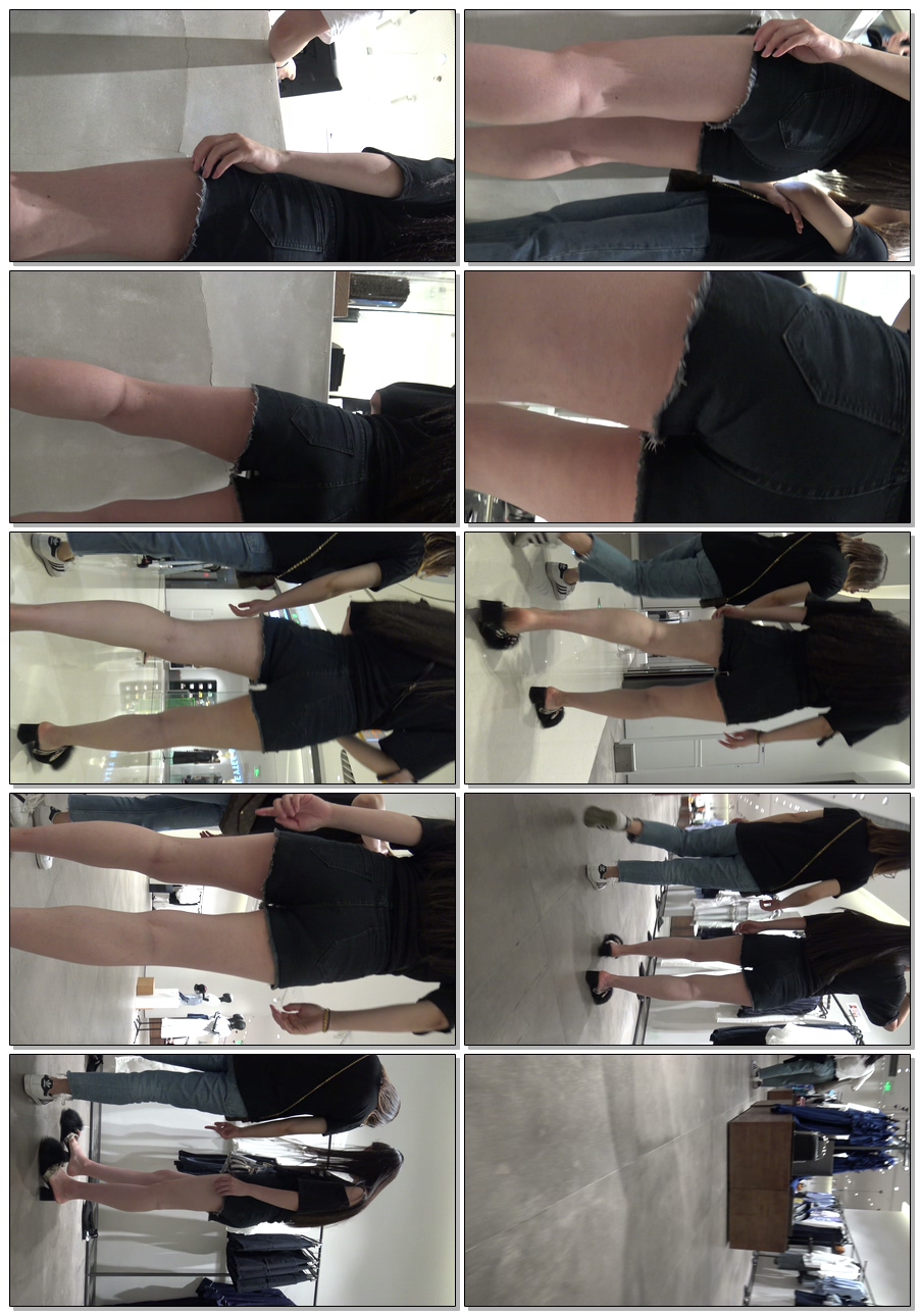 C944紧身黑牛仔短裤美腿美女