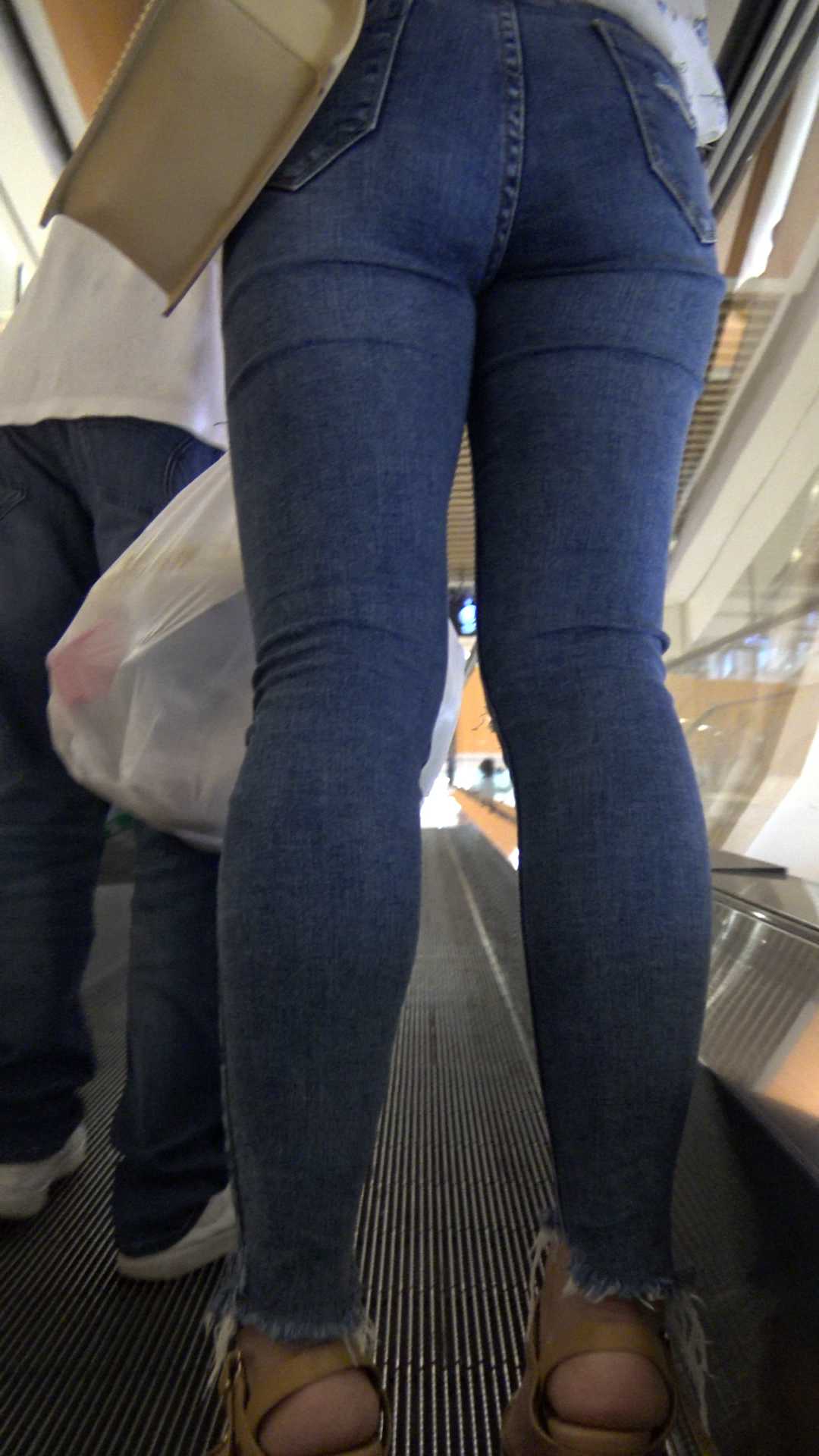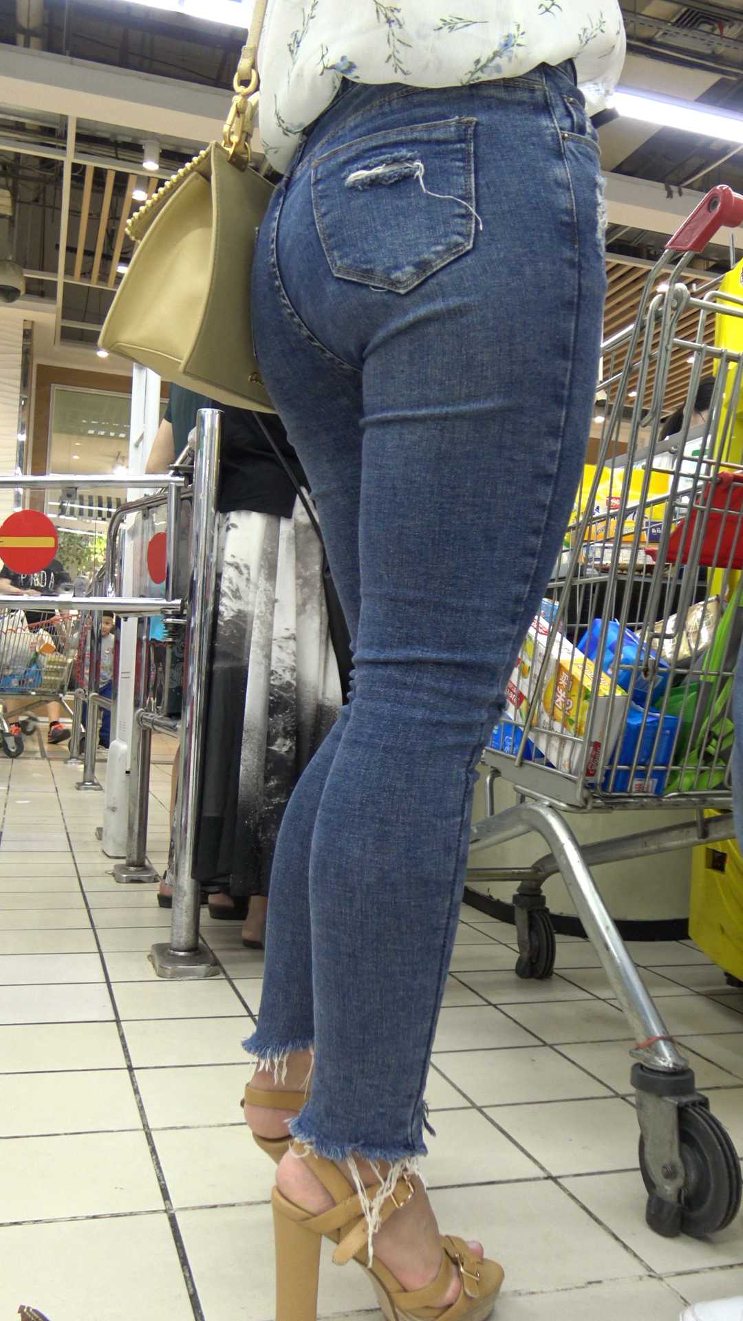 C985结账时看见紧致丰臀牛仔裤,男友看的紧