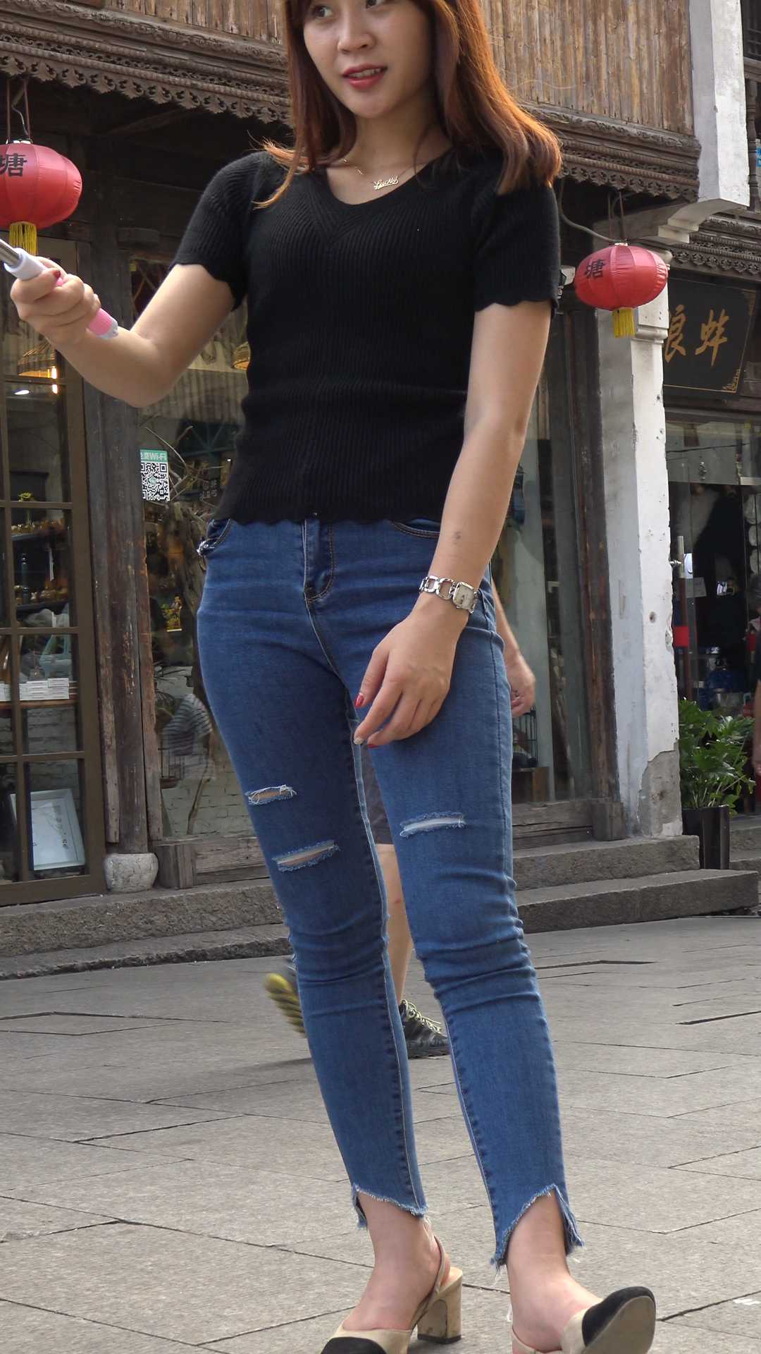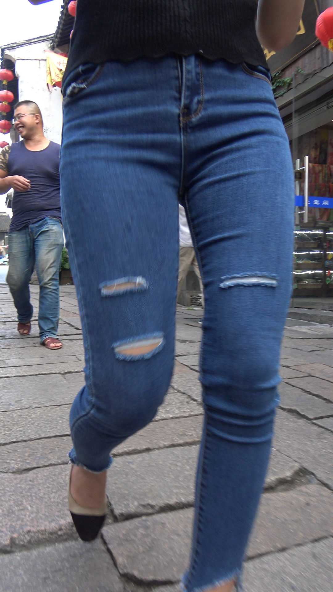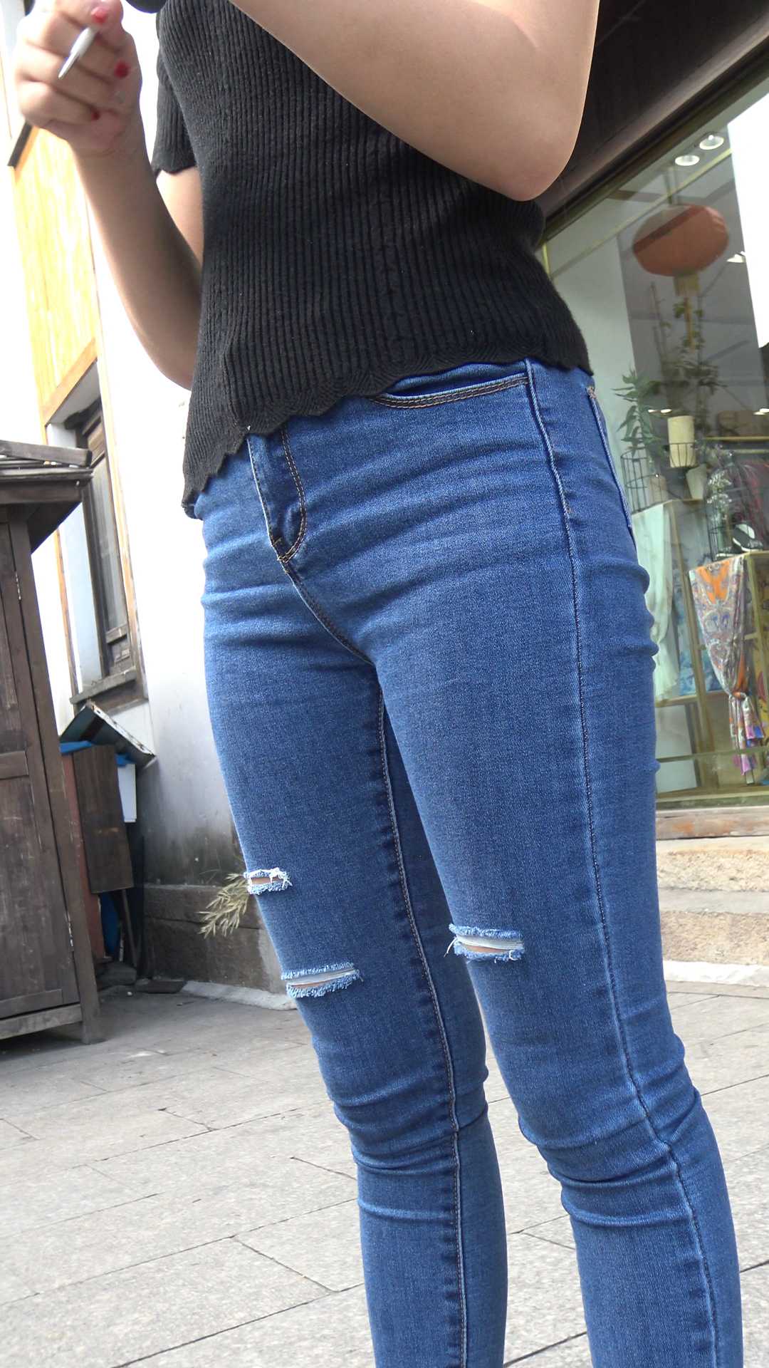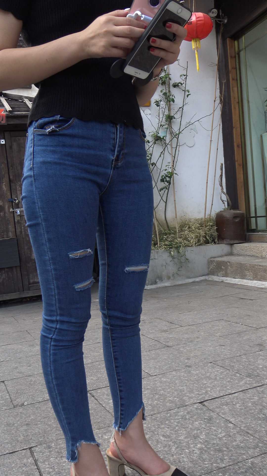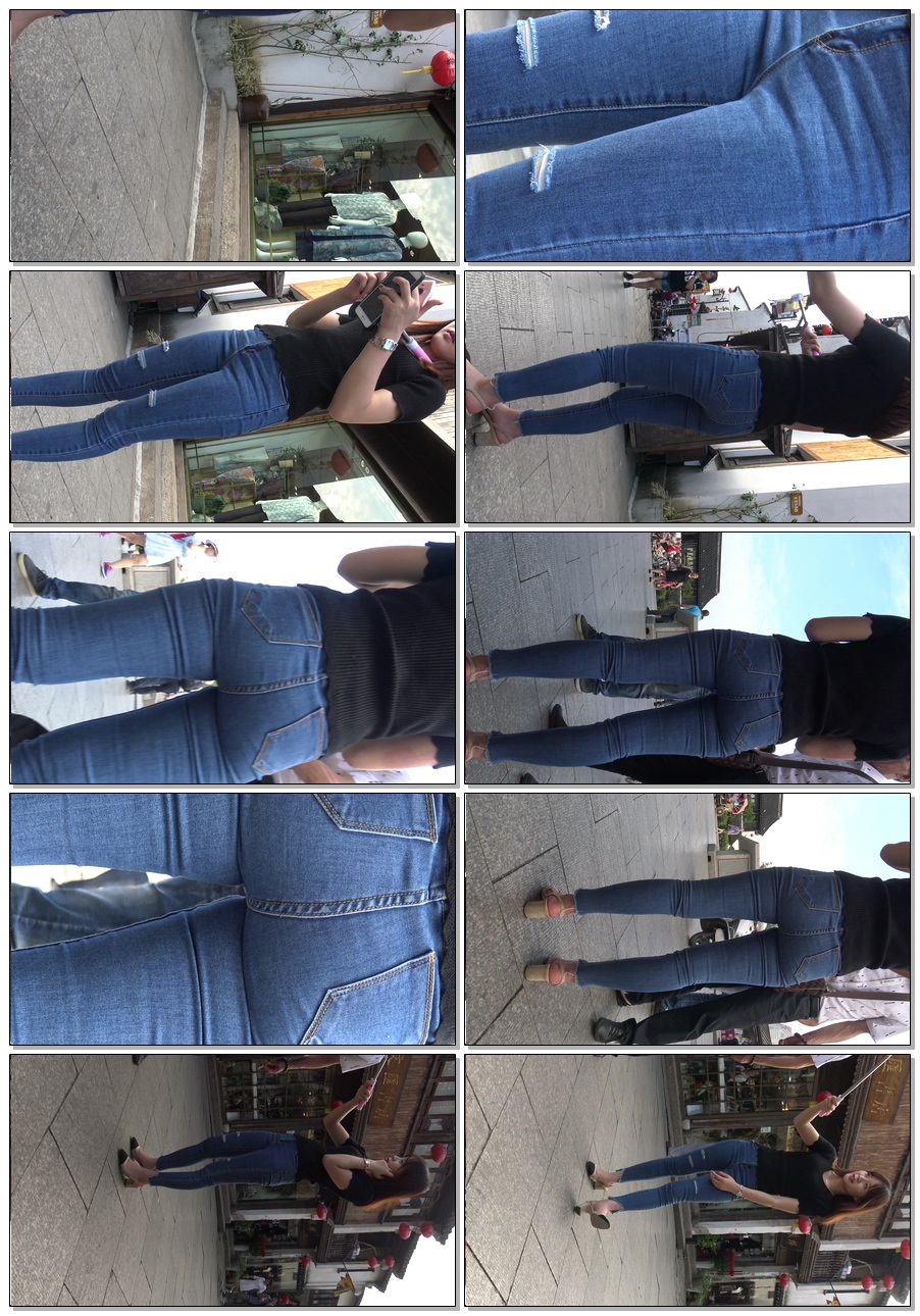 C1033街拍极品宽臀牛仔裤美女