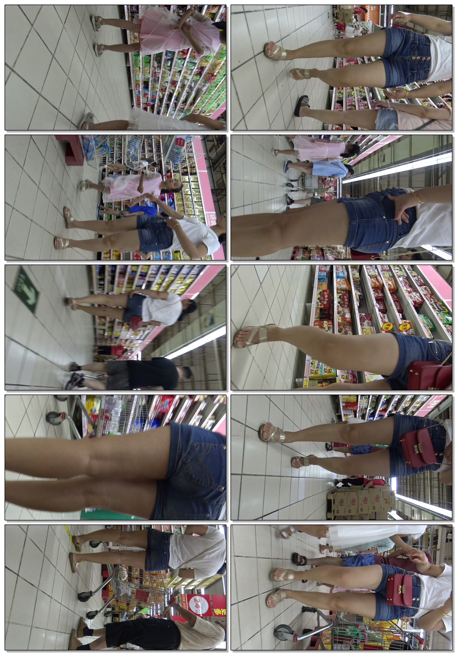 C1151超市牛仔短裤大宽臀少妇