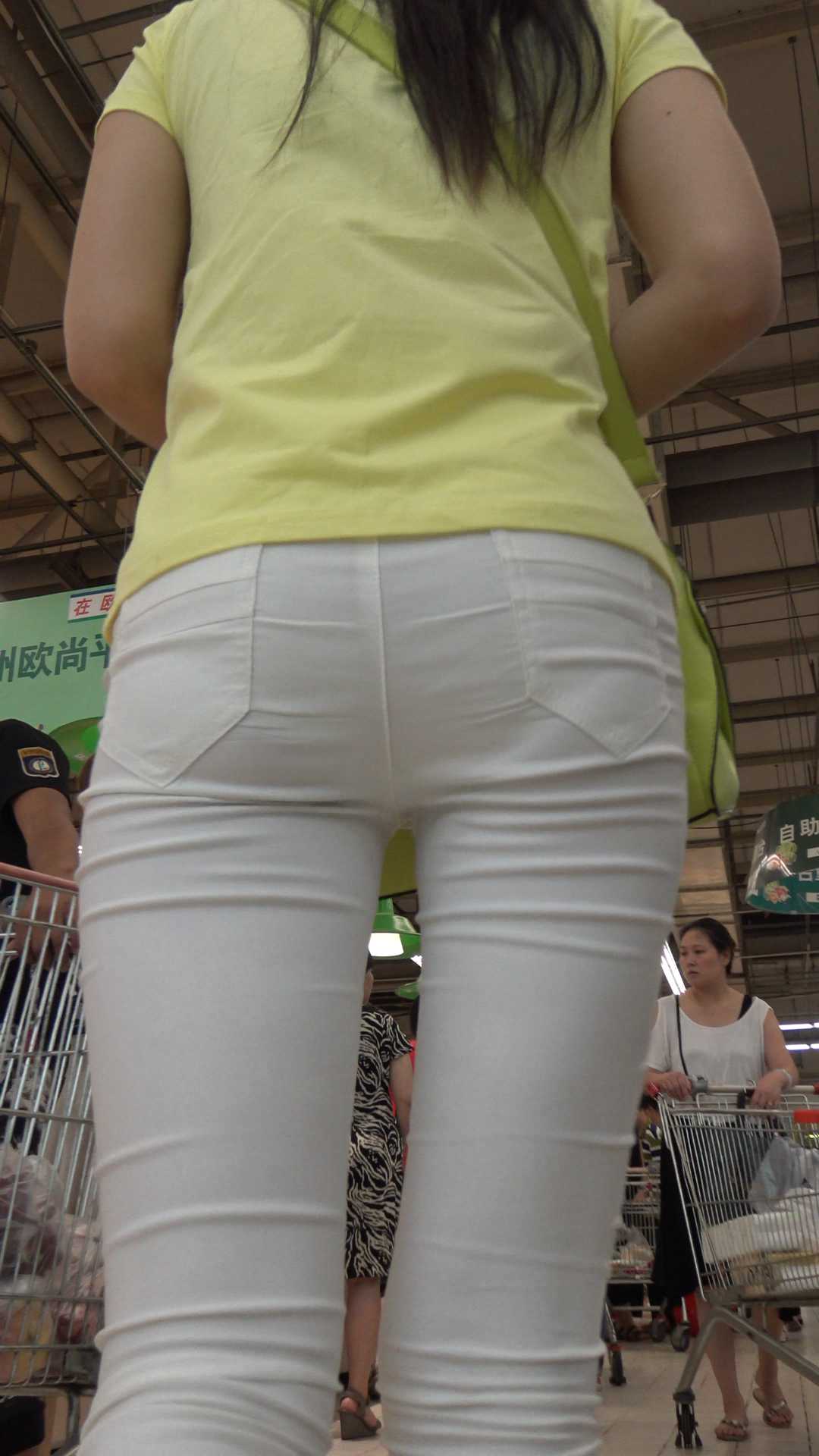 C1157超市白裤透内痕翘臀少妇