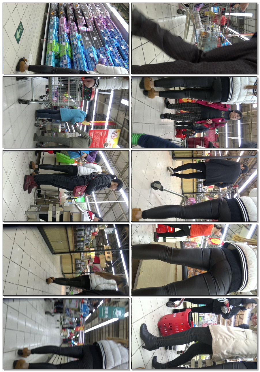 C1163超市皮裤苹果臀大美女