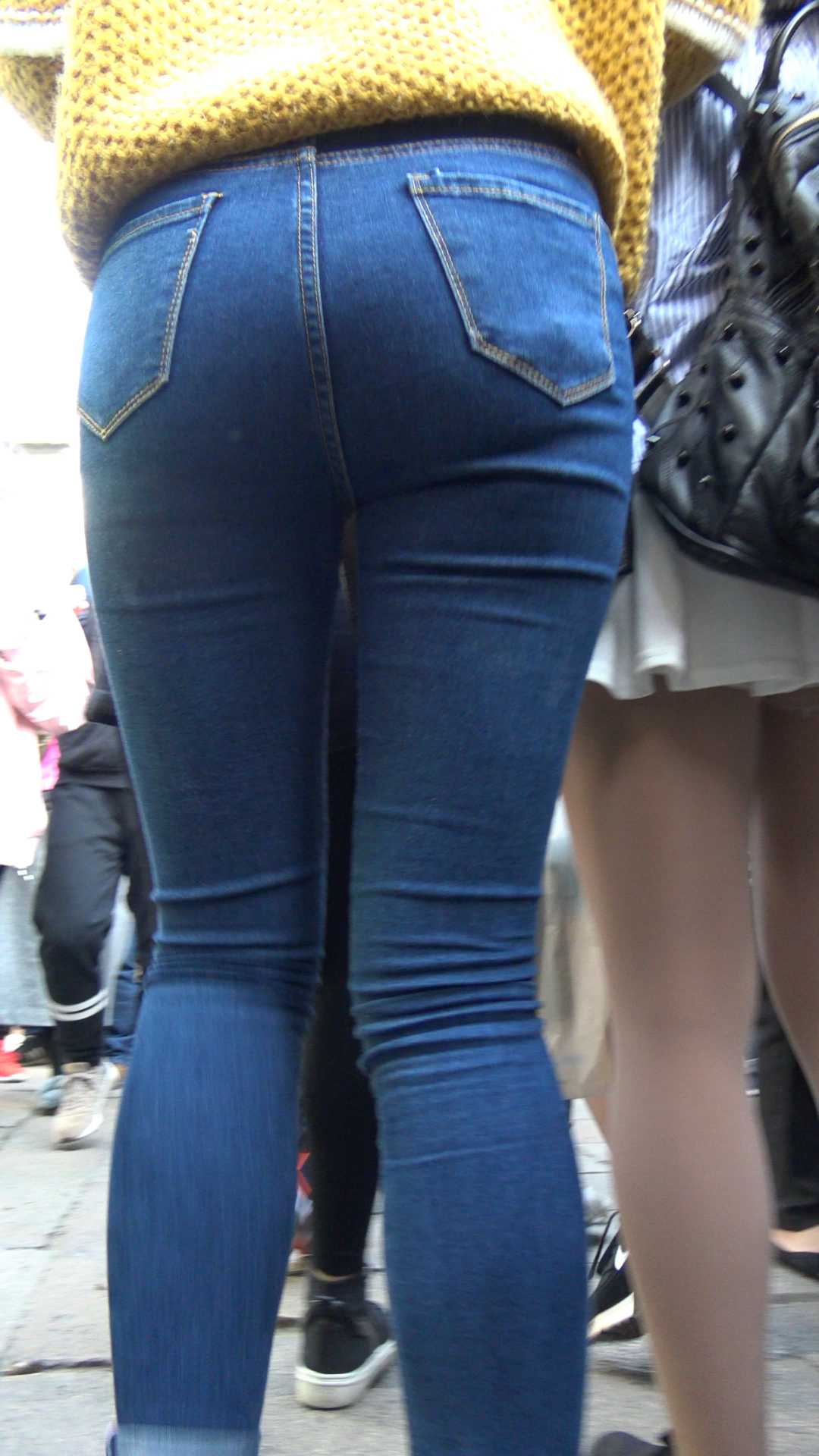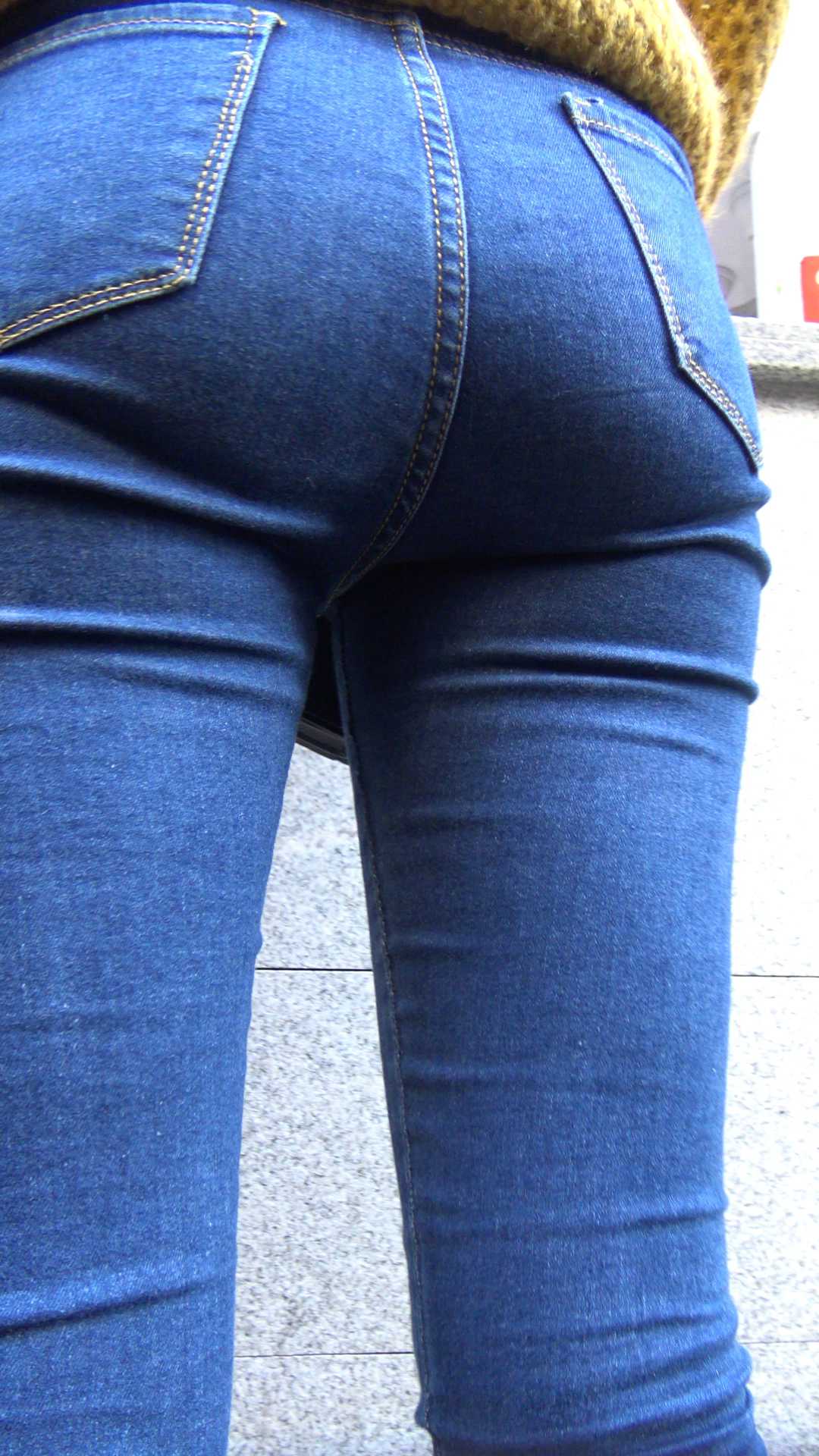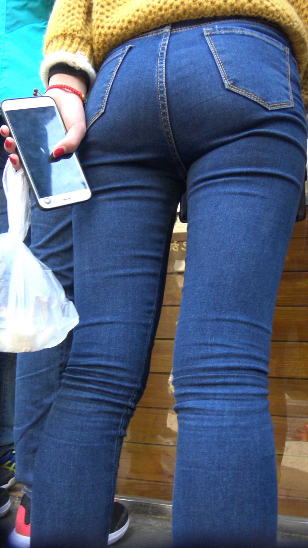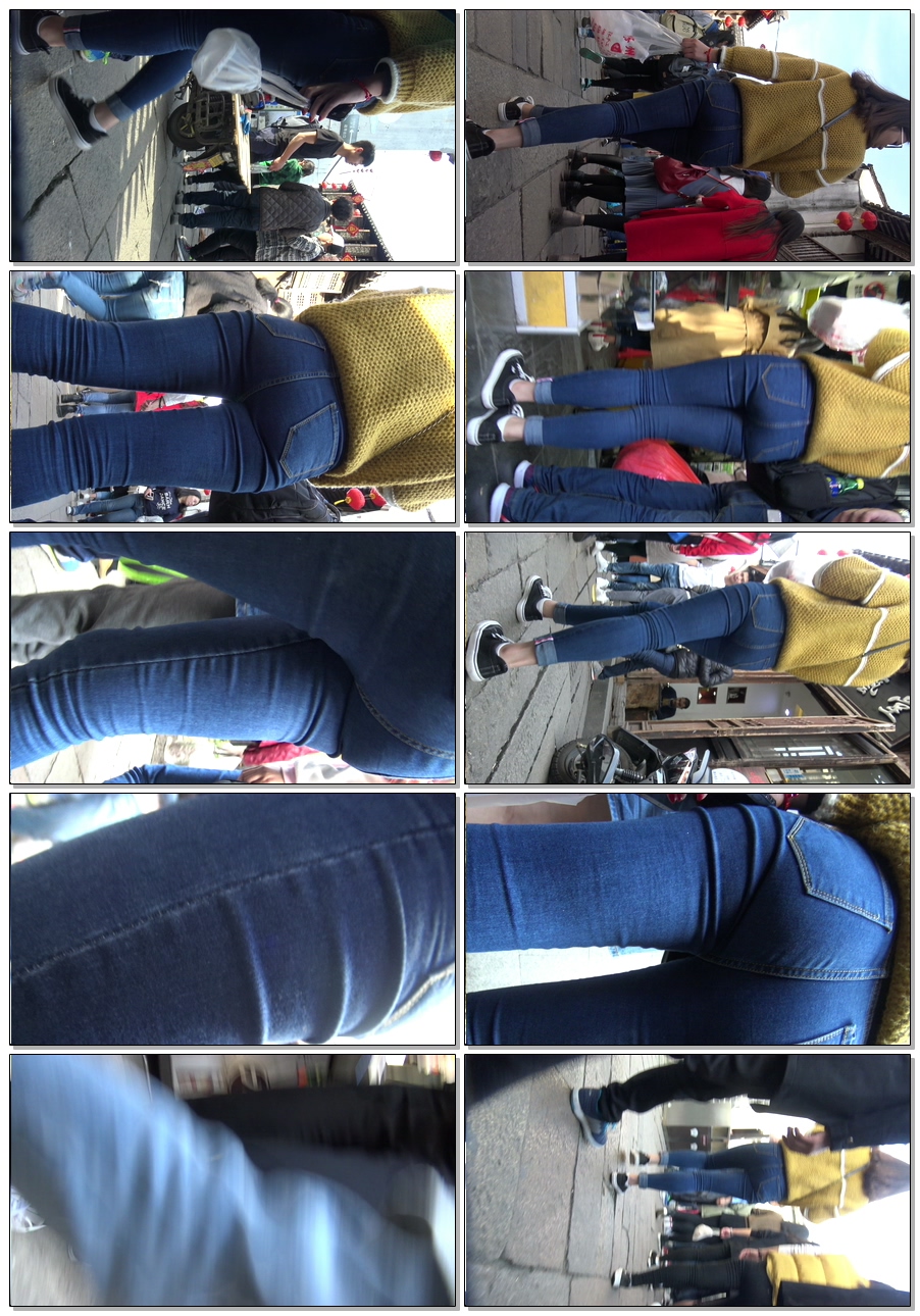 C1429鹰眼力荐极品蓝色紧身牛仔裤落单美女
