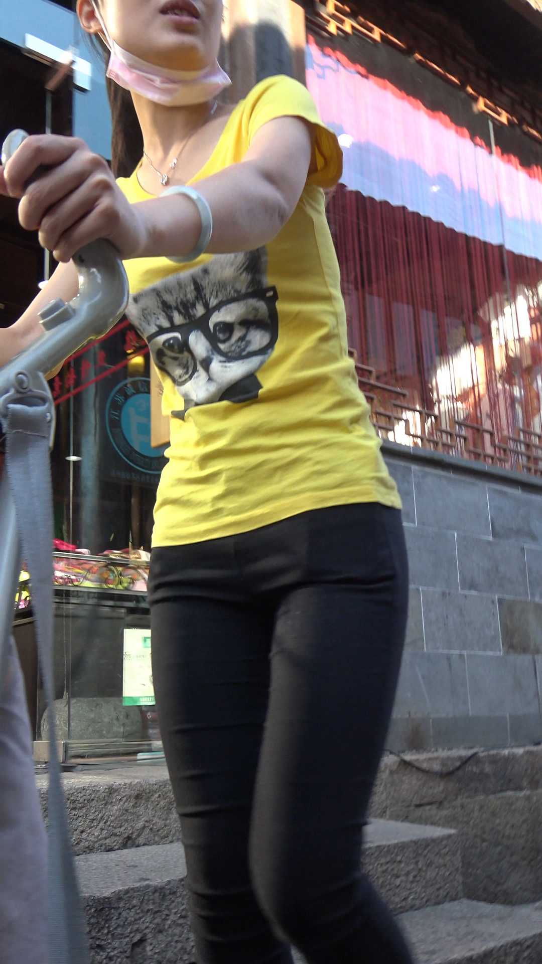 C1496黑裤大宽臀紧内痕年青妈咪推车姿势真让人受不了第一季