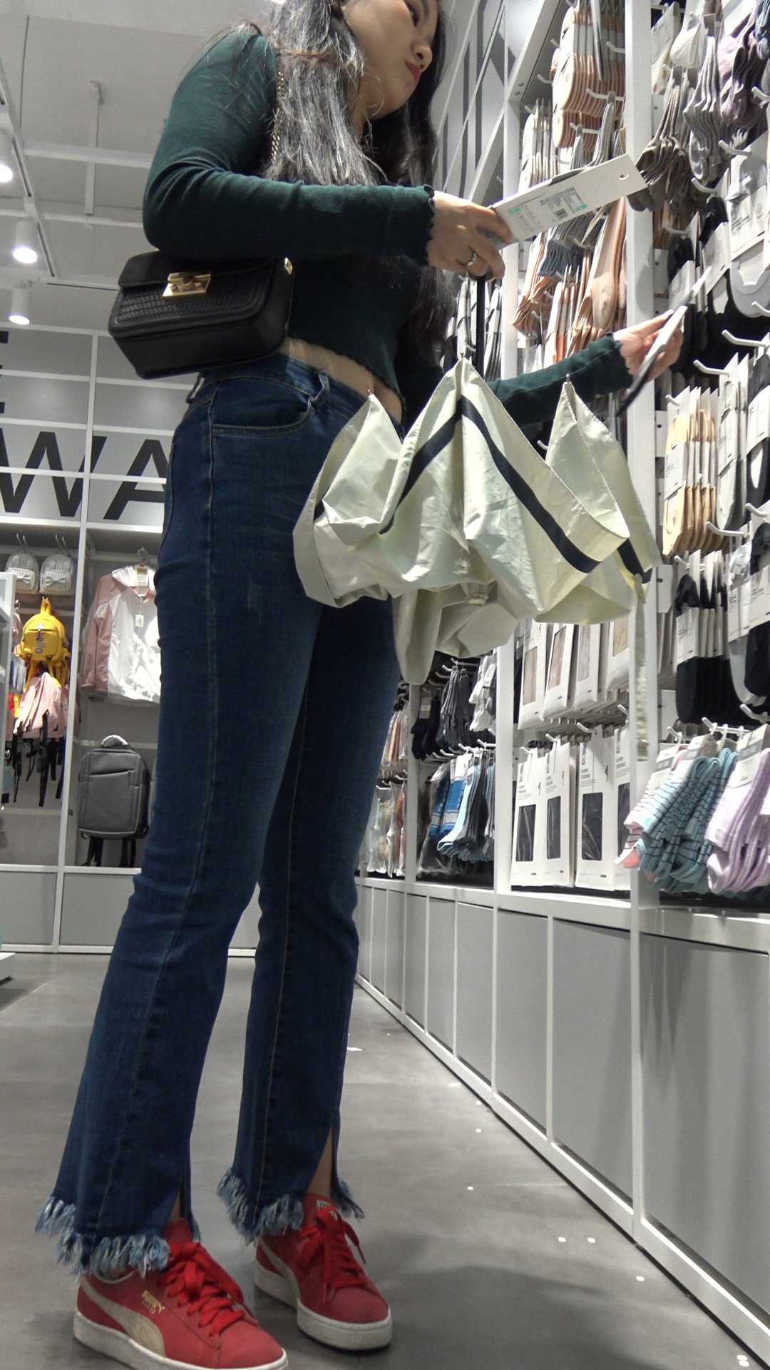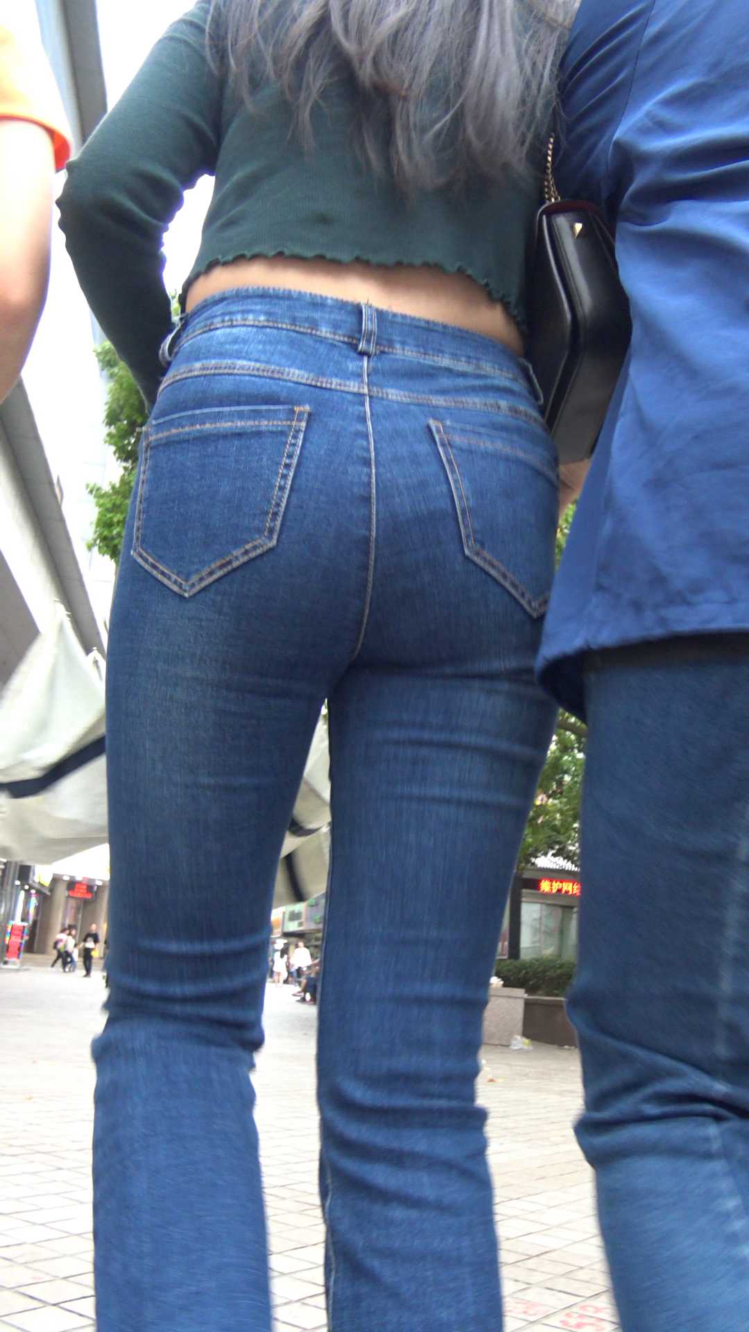 C168牛仔喇叭裤饱满大宽臀长发大美女