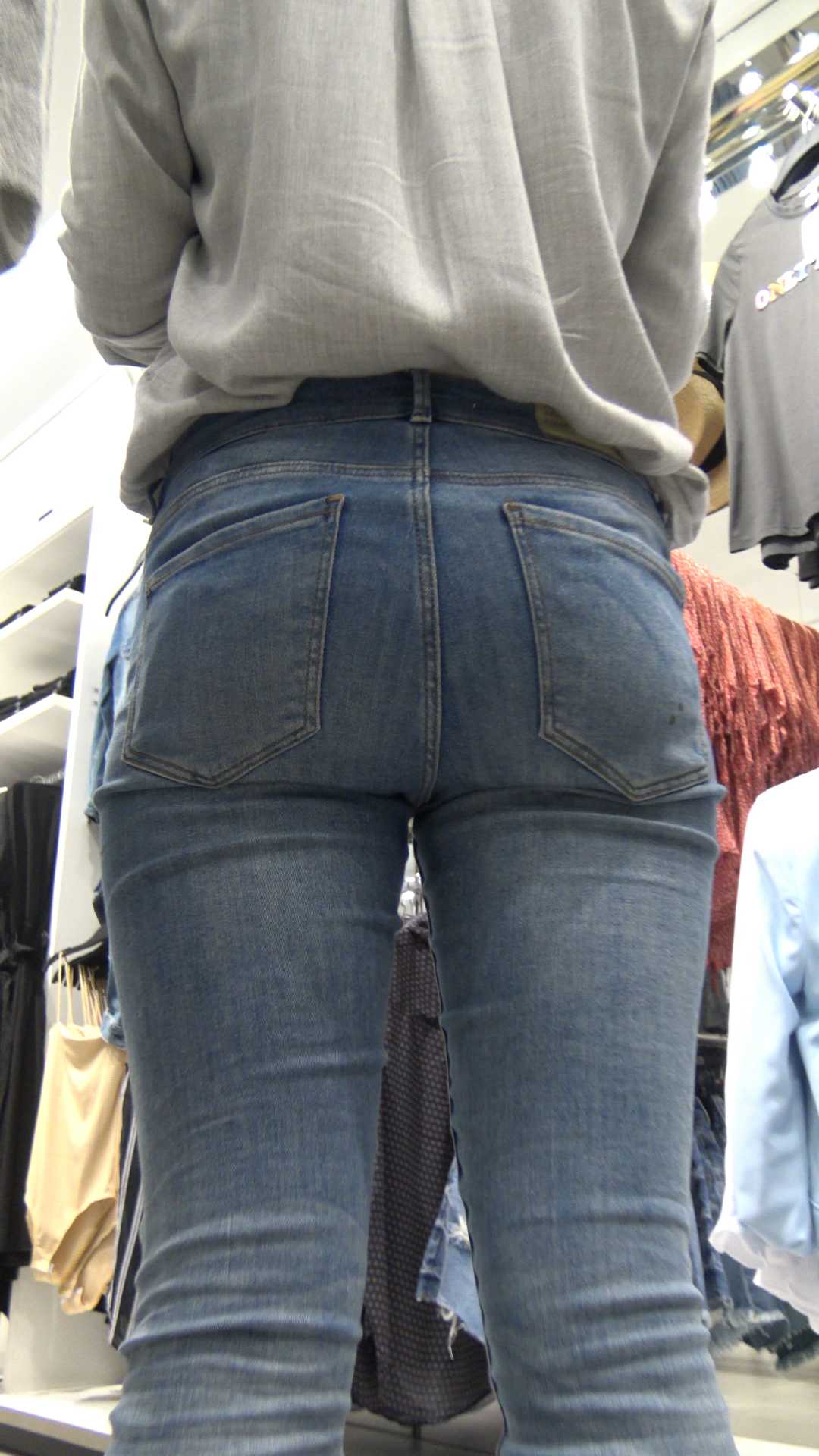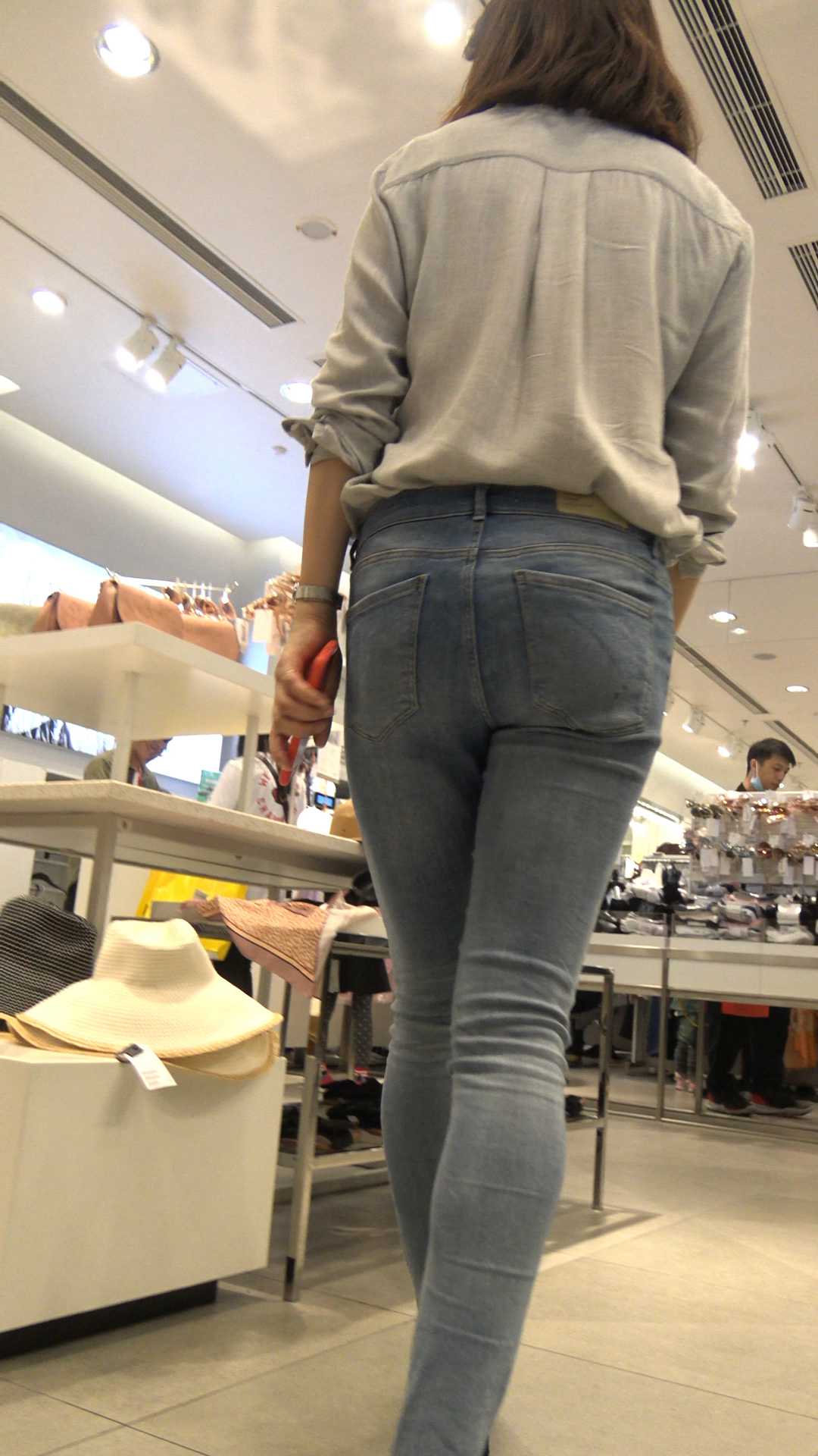 C182服装店包臀紧身灰牛仔少女