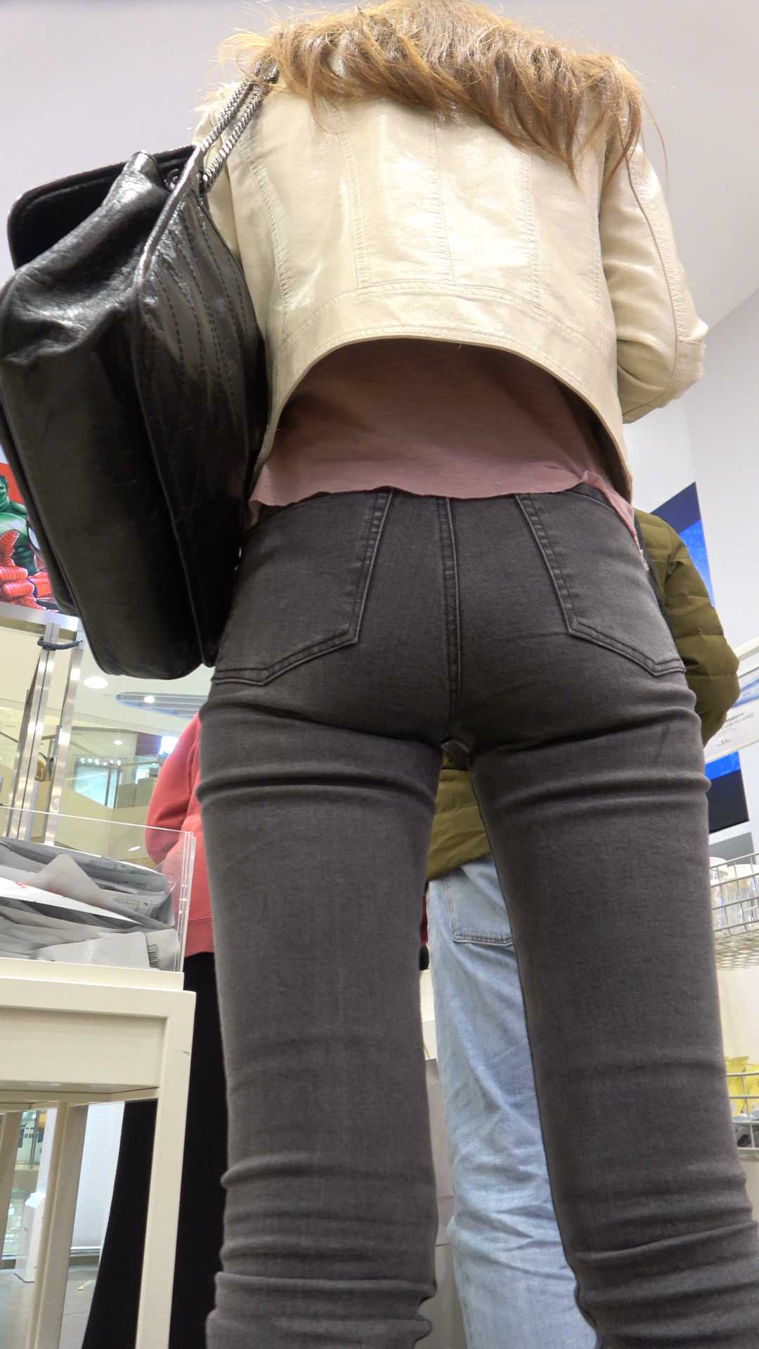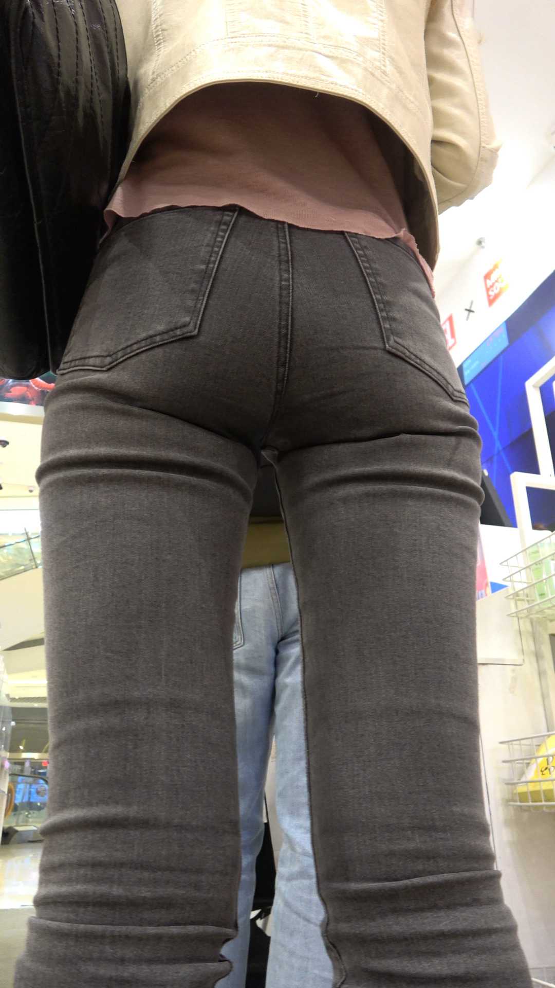 C198灰牛仔紧内痕美女小姐姐