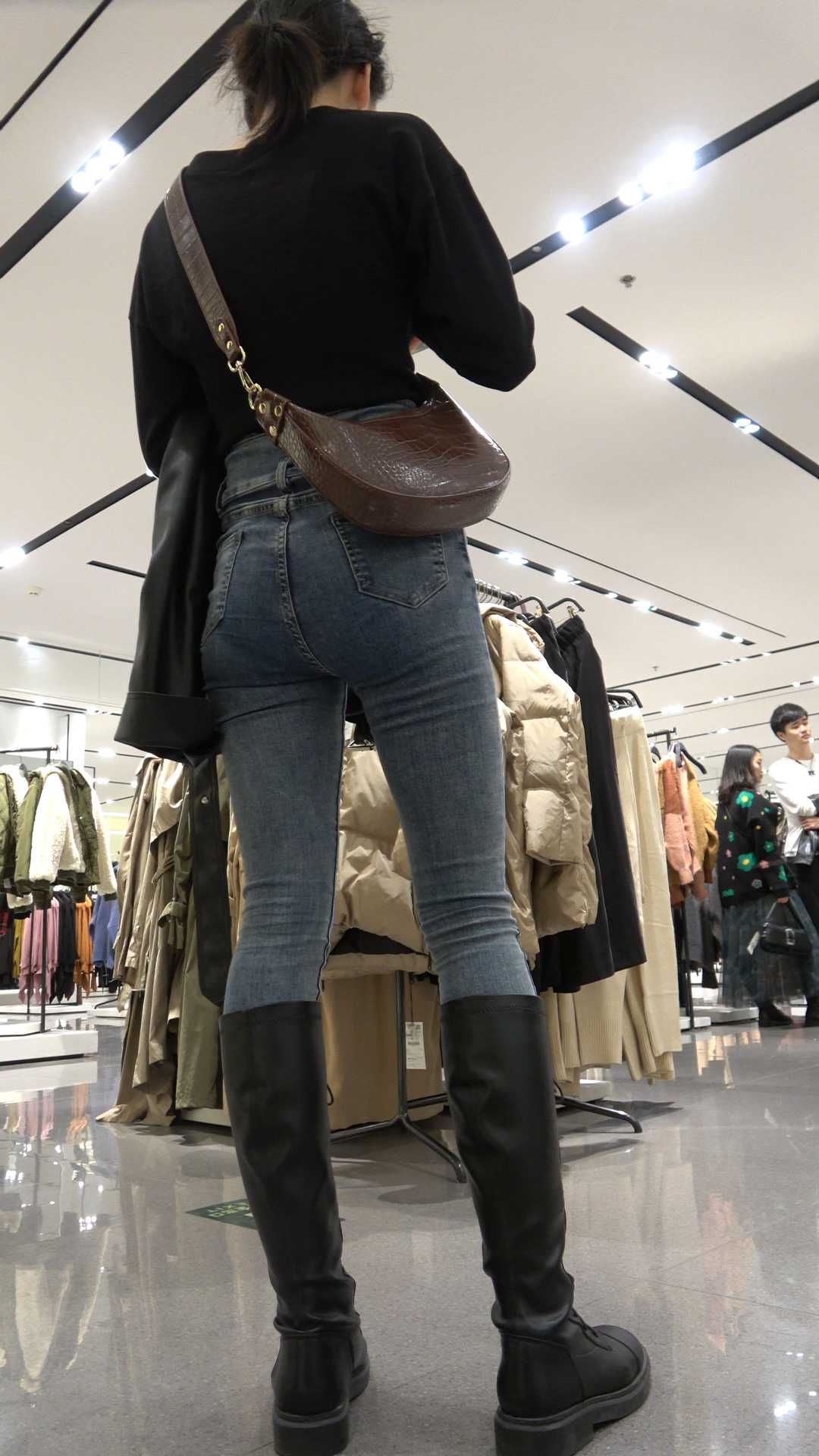 C224紧身灰牛仔小姐姐购物