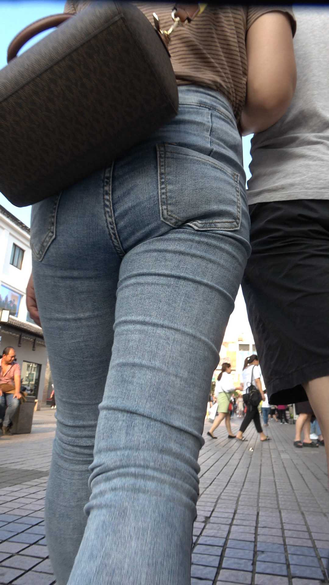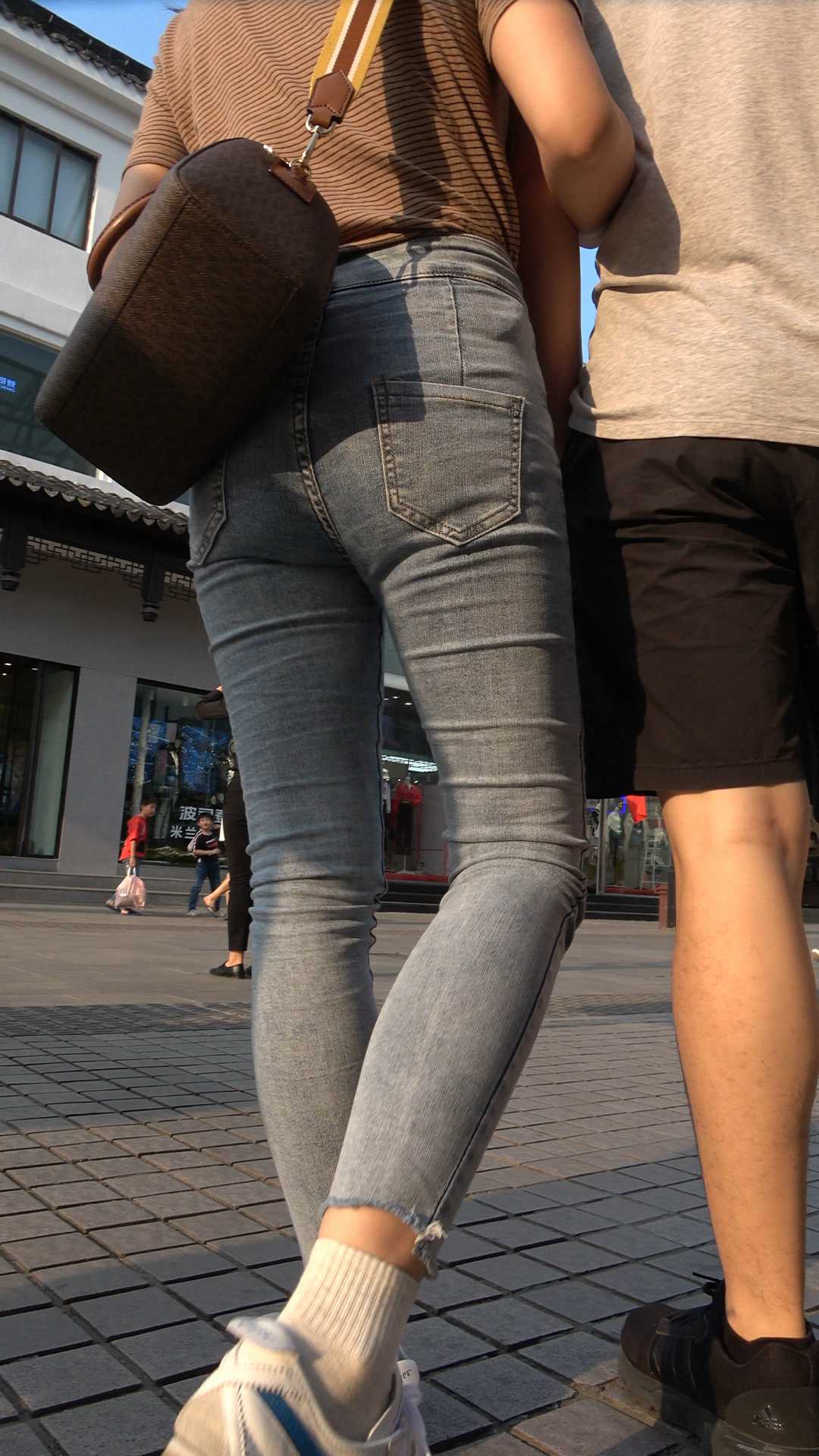 C229紧身灰牛包臀背包少妇
