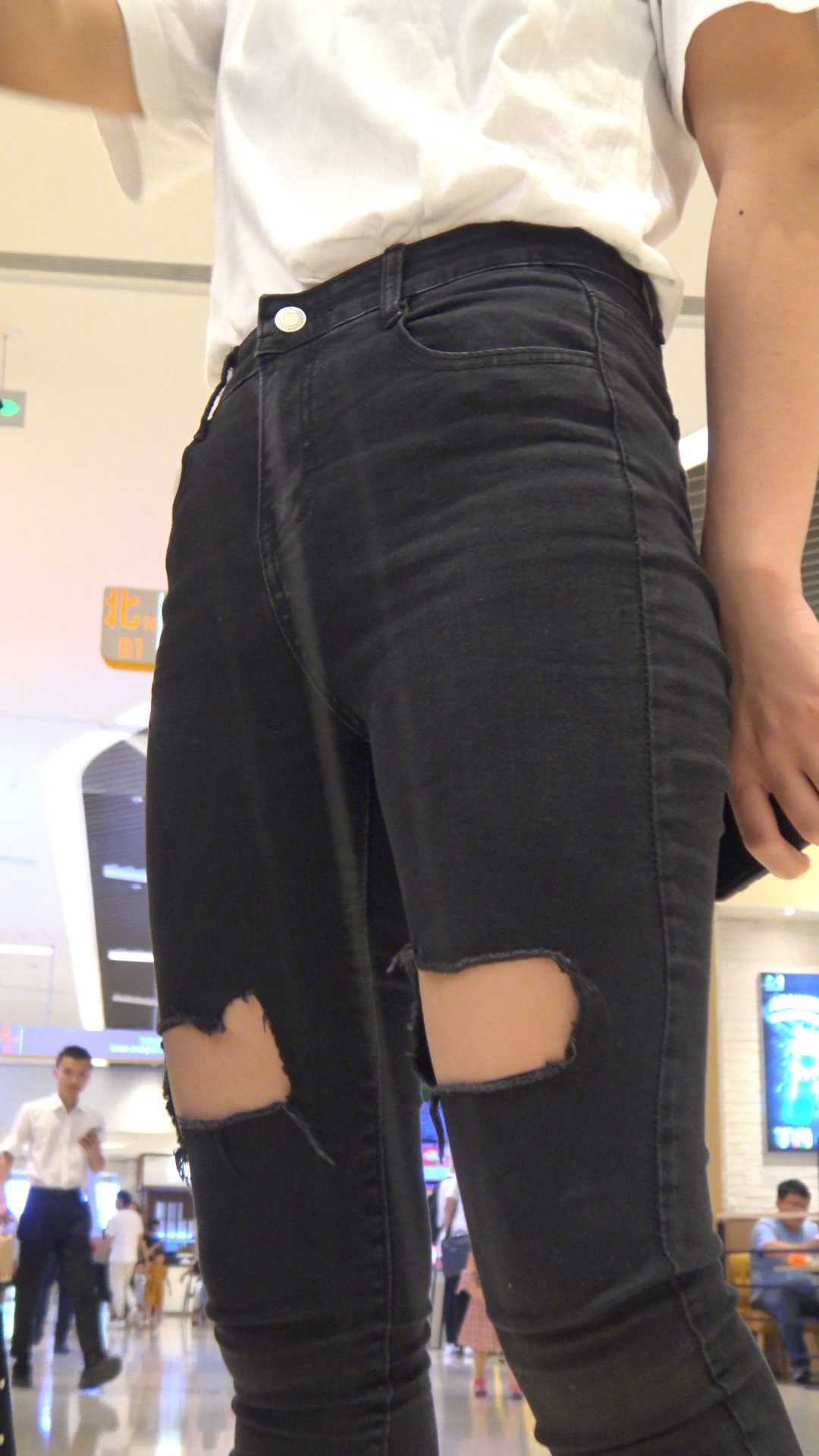 C248紧身黑牛仔少妇翘臀金三角特写