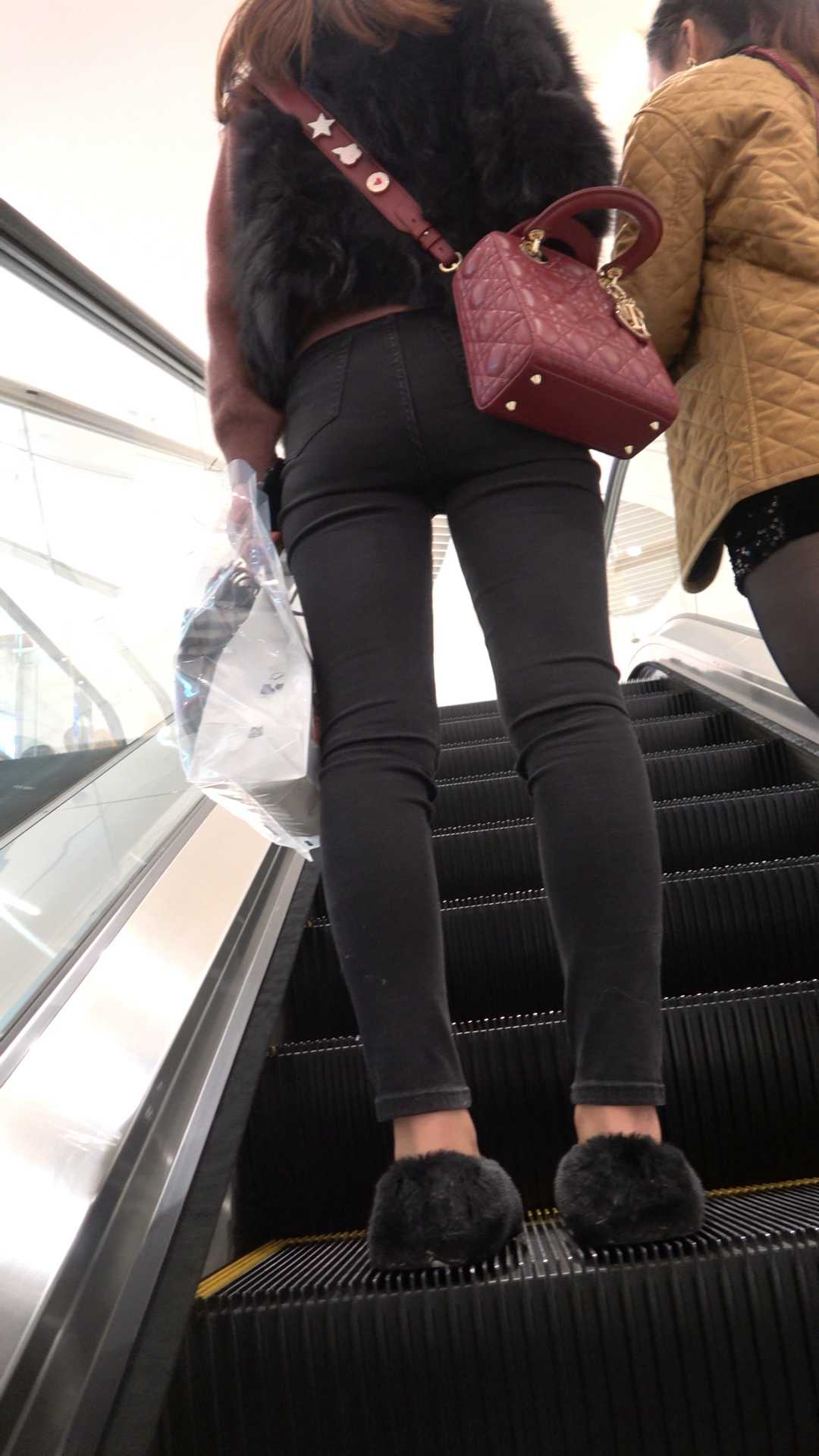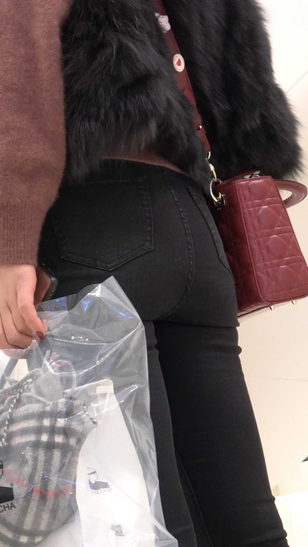 C252紧身黑牛仔紧臀紧内痕小姐姐