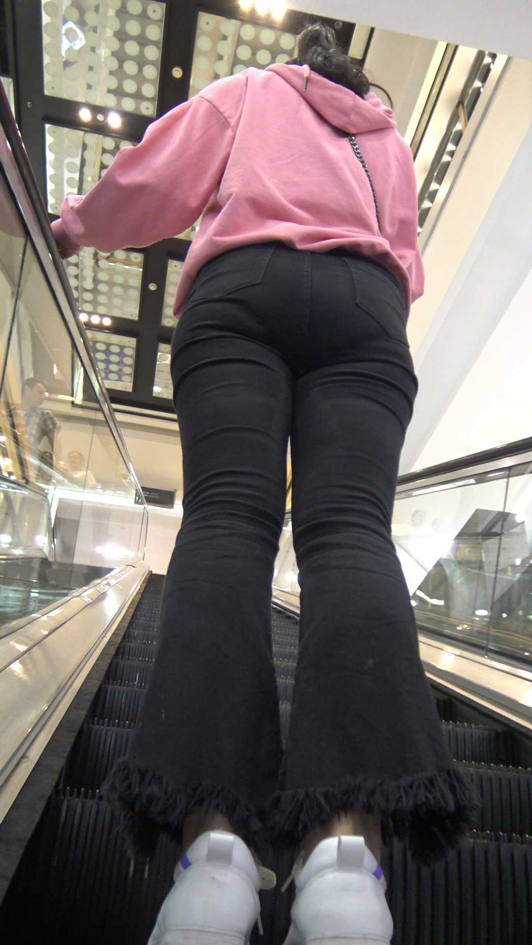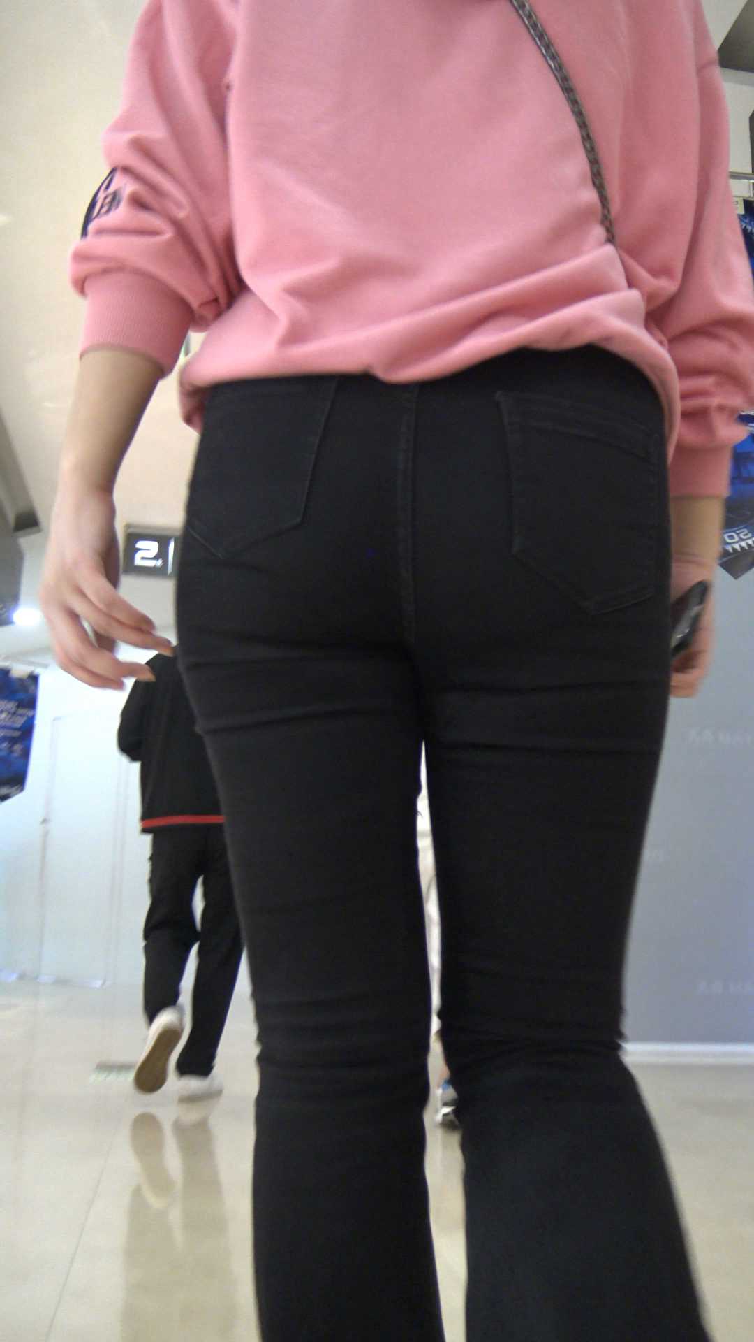 C350黑牛仔喇叭裤超紧内痕小姐姐