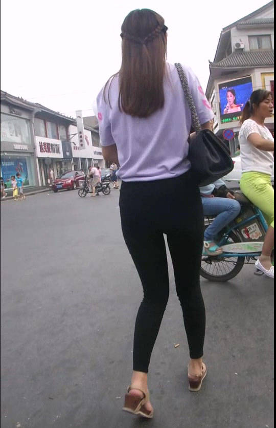 街拍精品:身材完美的裹臀裙紧身牛仔裤丰臀女孩 编号1014