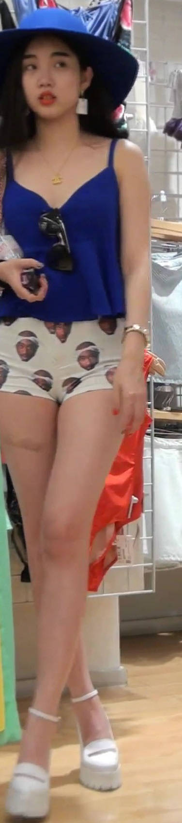 街拍精品:螓首蛾眉的超短裙牛仔短裤肉丝女生 编号1053