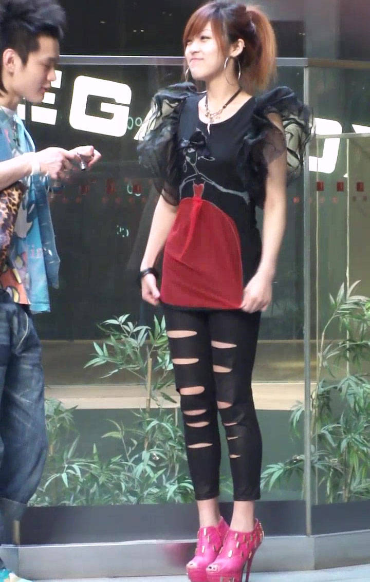 街头新潮流:巧笑倩兮的裹臀裙紧身裤高跟鞋mm 编号1088