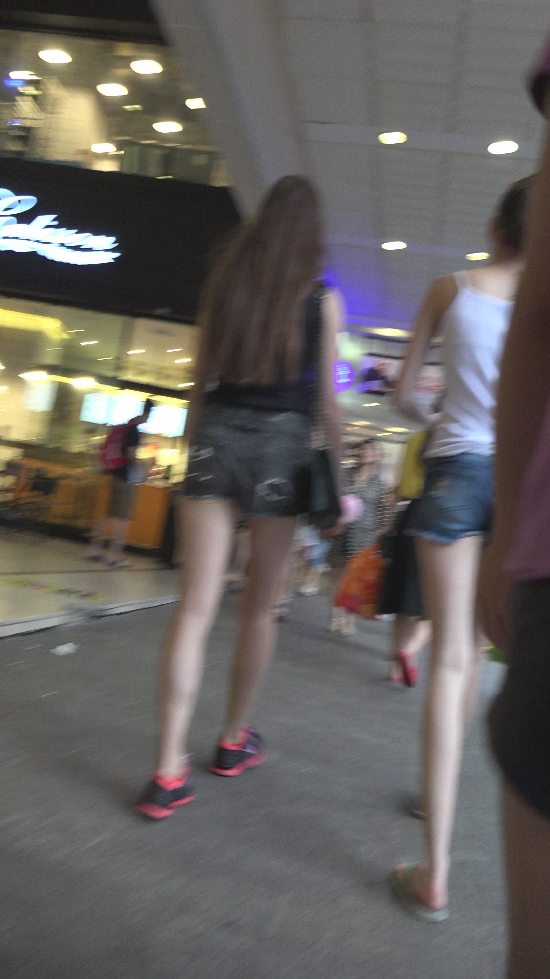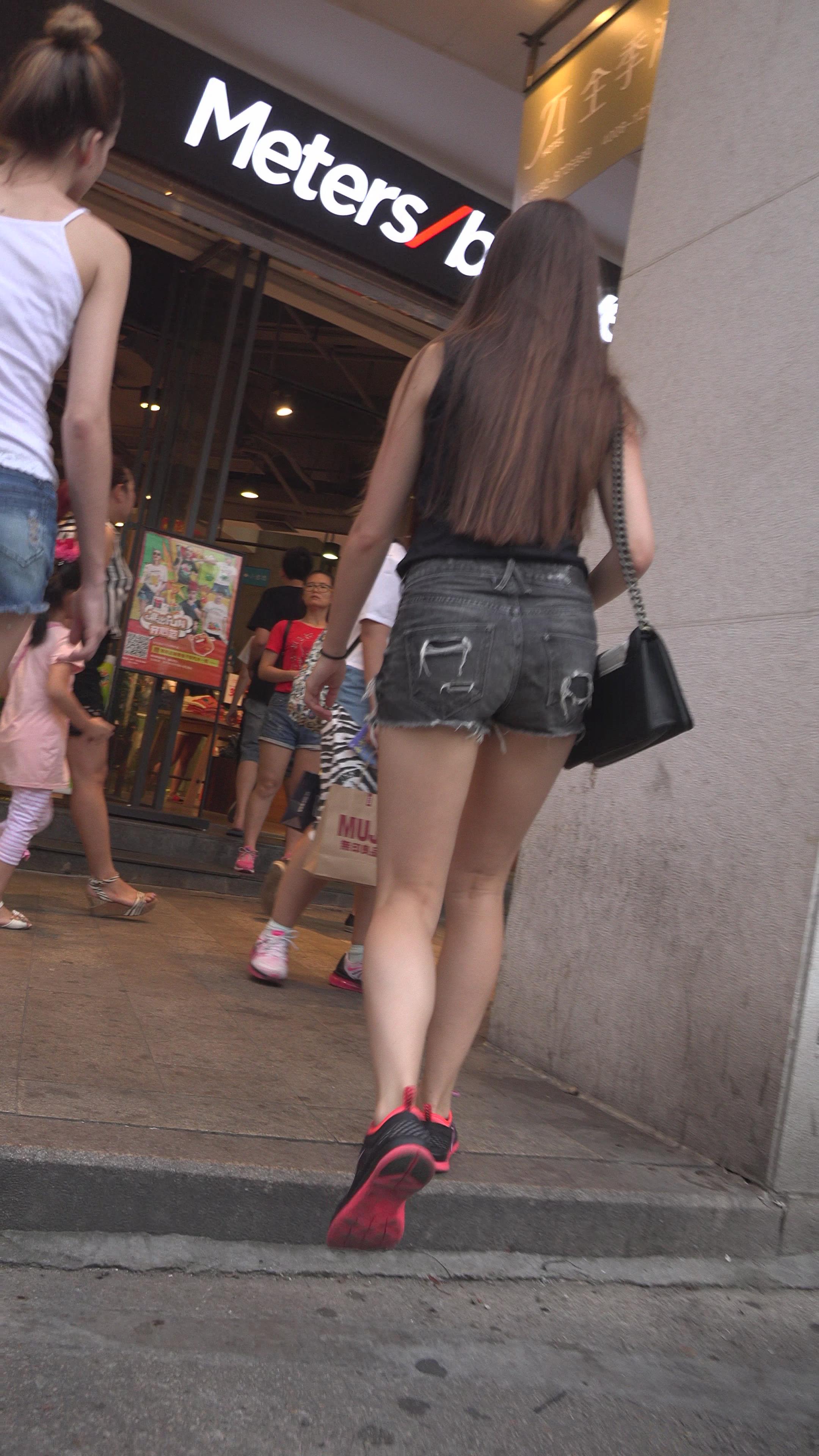 4k-街拍高腰牛仔热裤美腿高挑美女 编号3305