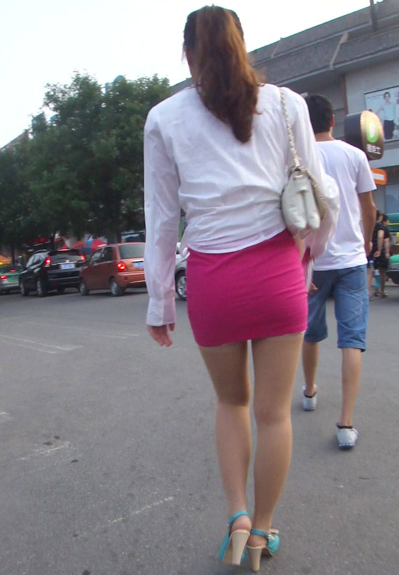 街拍精品:身材无可挑剔的短裙紧身牛仔裤丰臀女孩 编号1137
