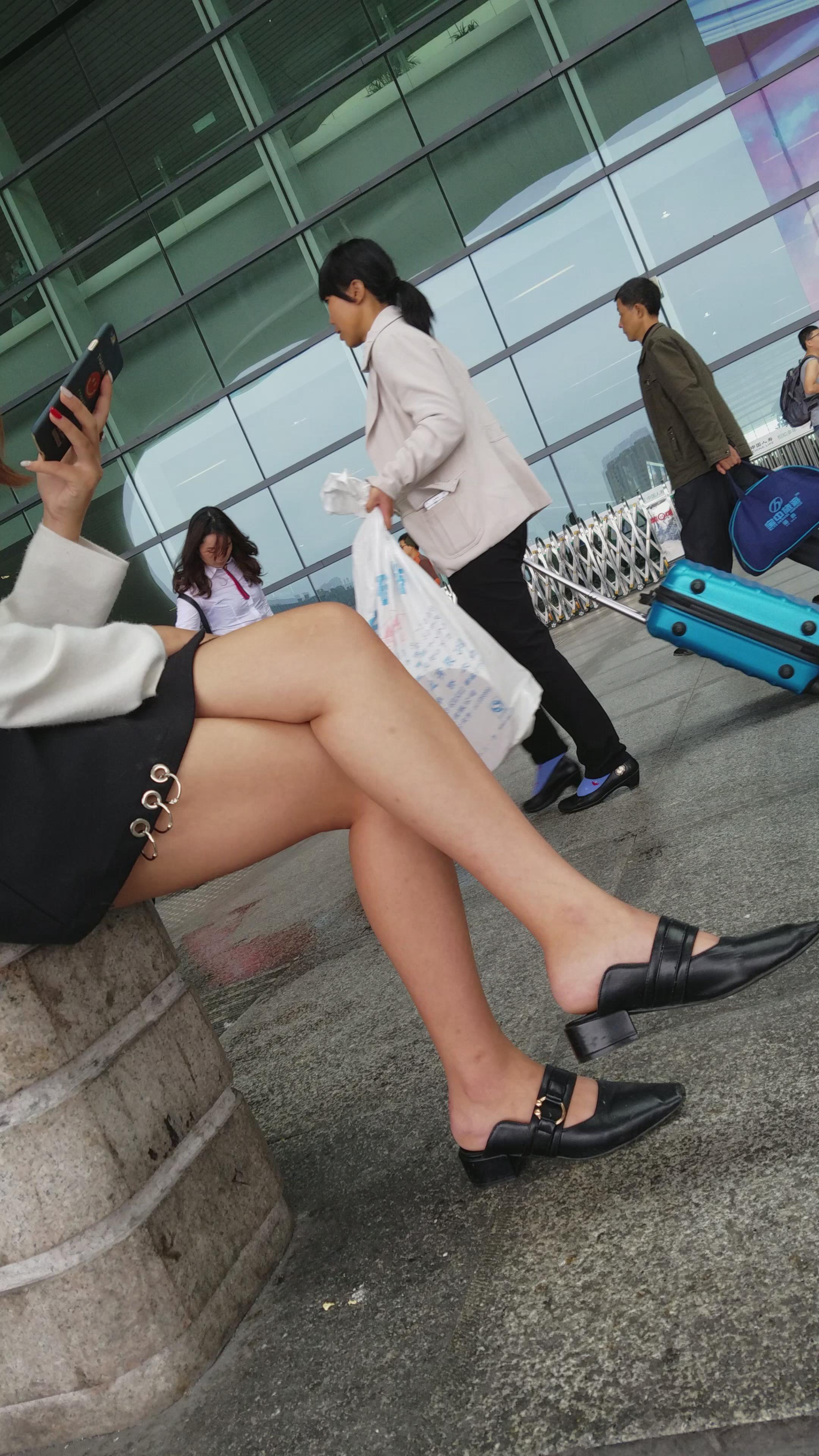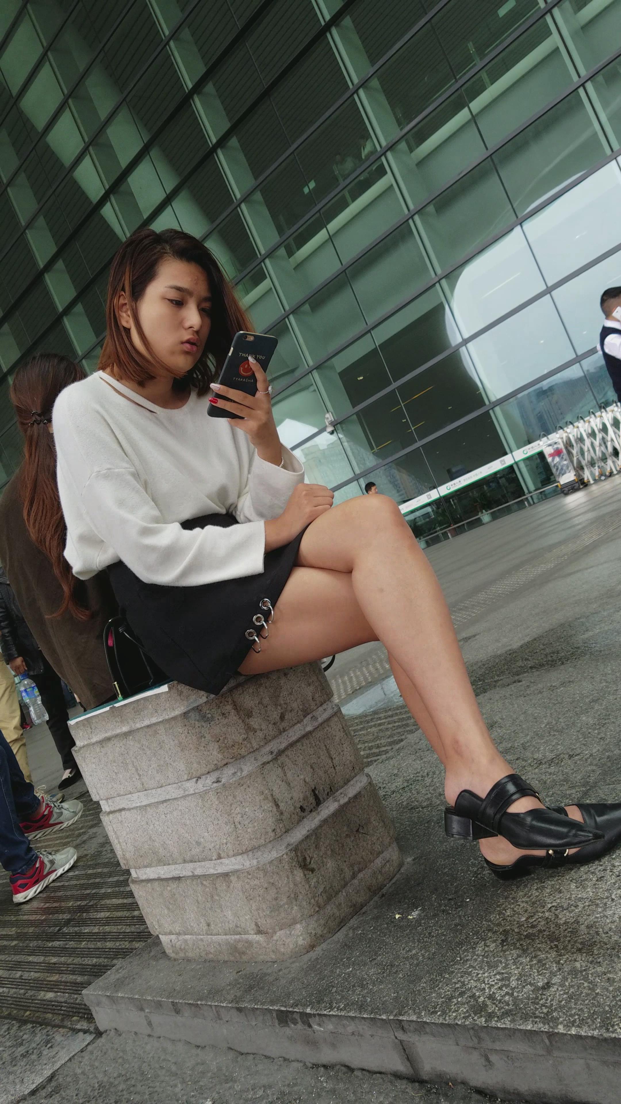 4k-坐在石墩上玩手机的美腿短裙美女姐姐 编号3312