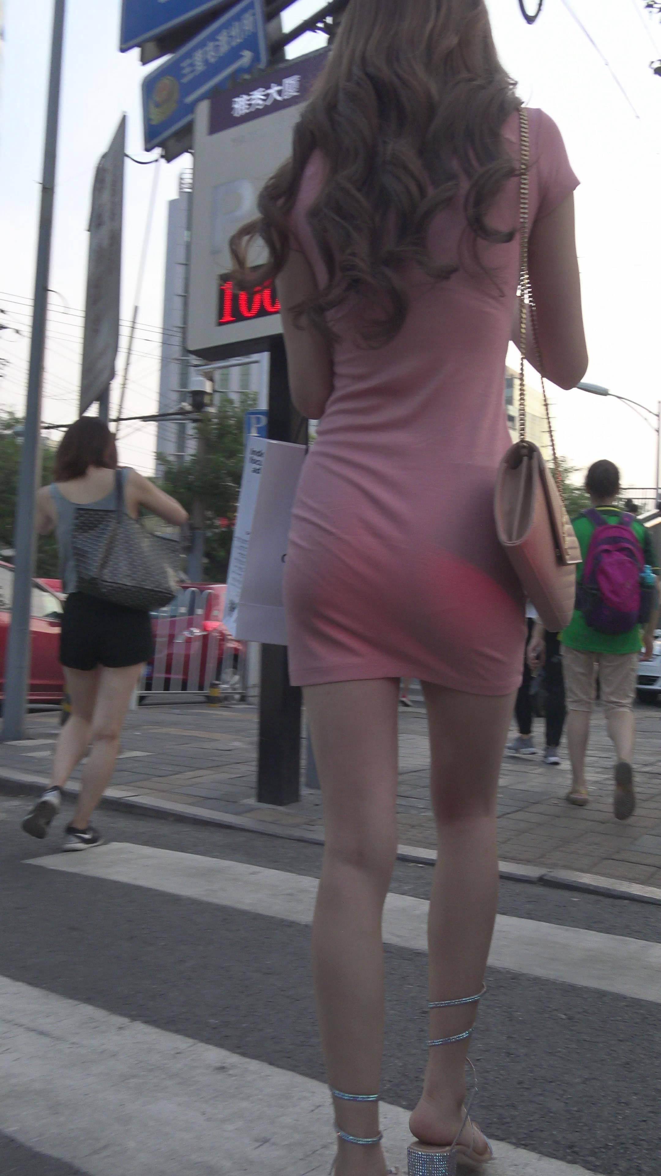 4K 街拍粉色紧身裙美腿美女第二季 编号7932