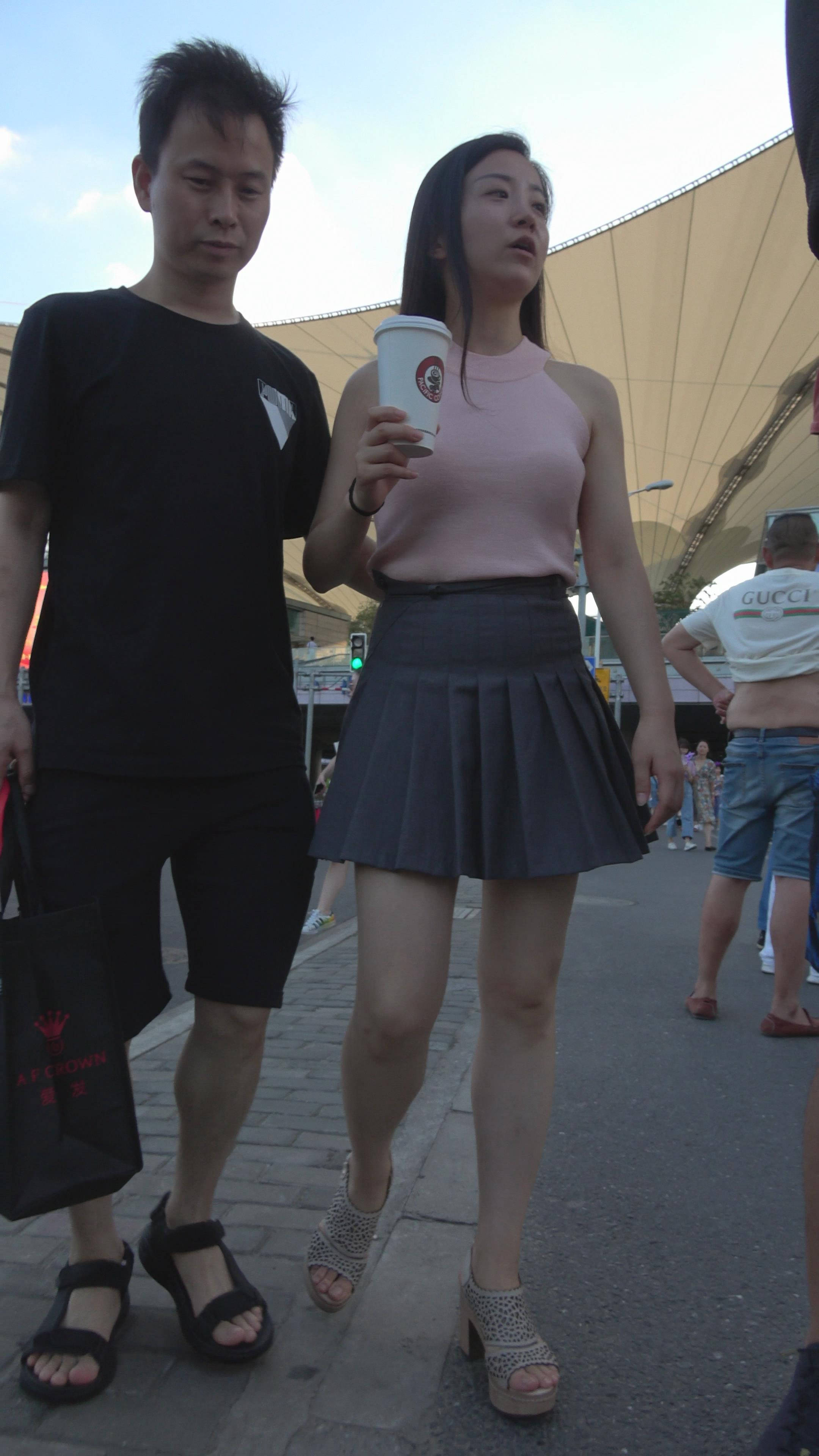 4K 粉色衣服街拍短裙美女 编号7321