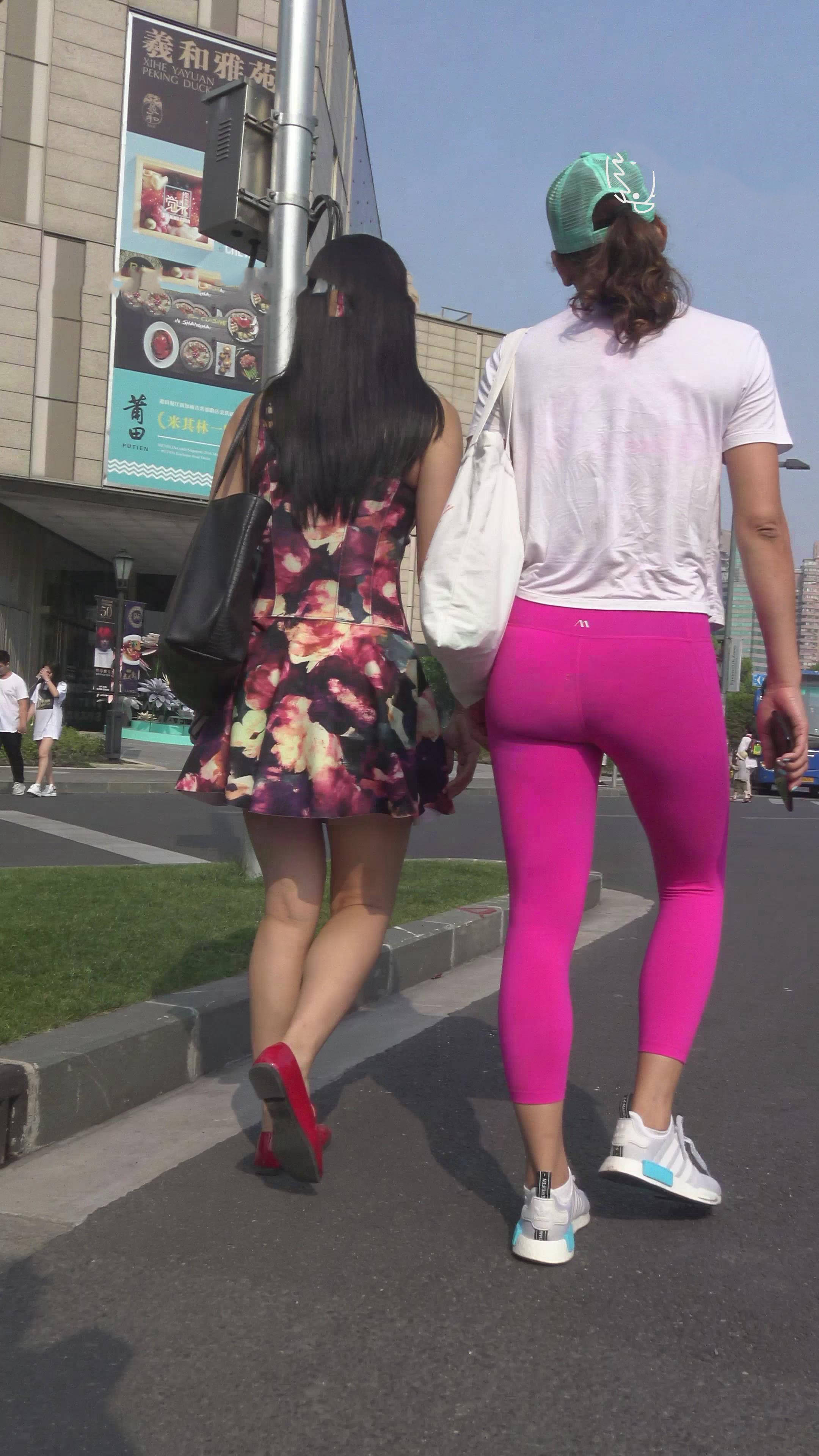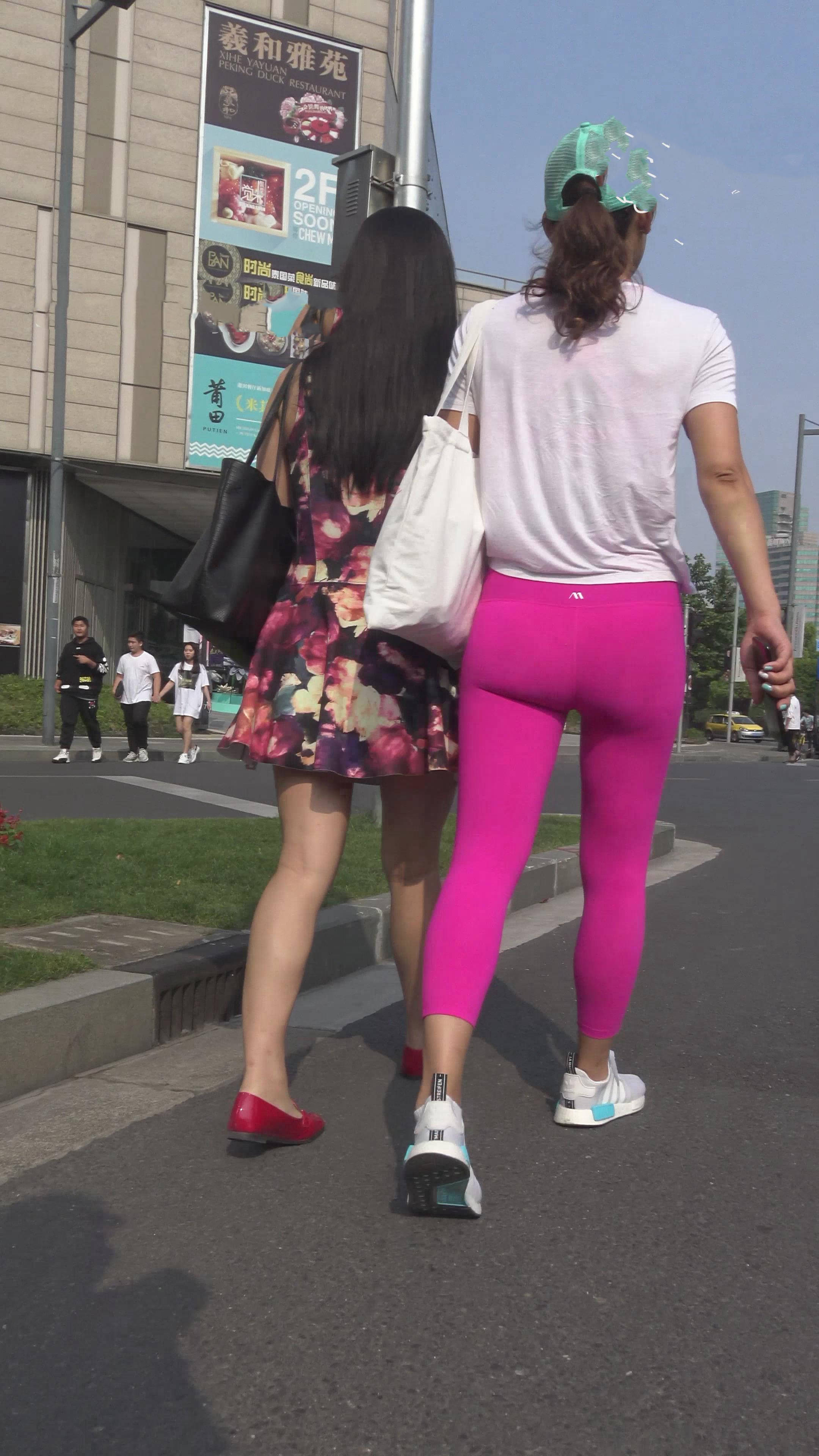 4k-粉色紧身运动裤苗条美女,半透明T恤文胸可见真诱惑 编号7435