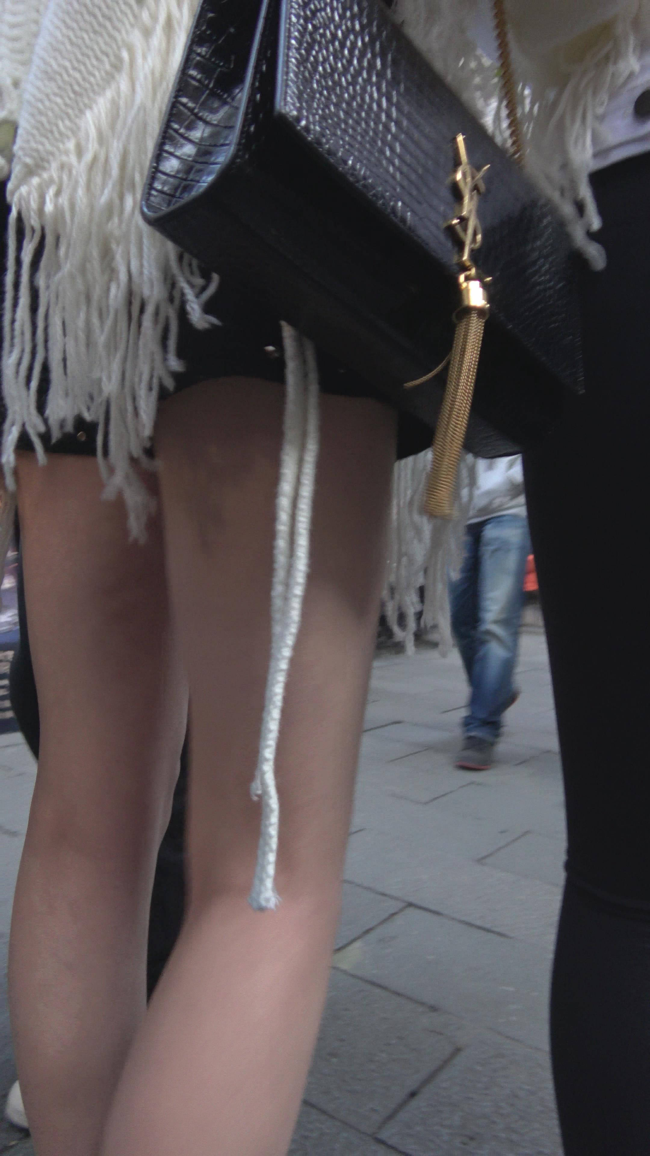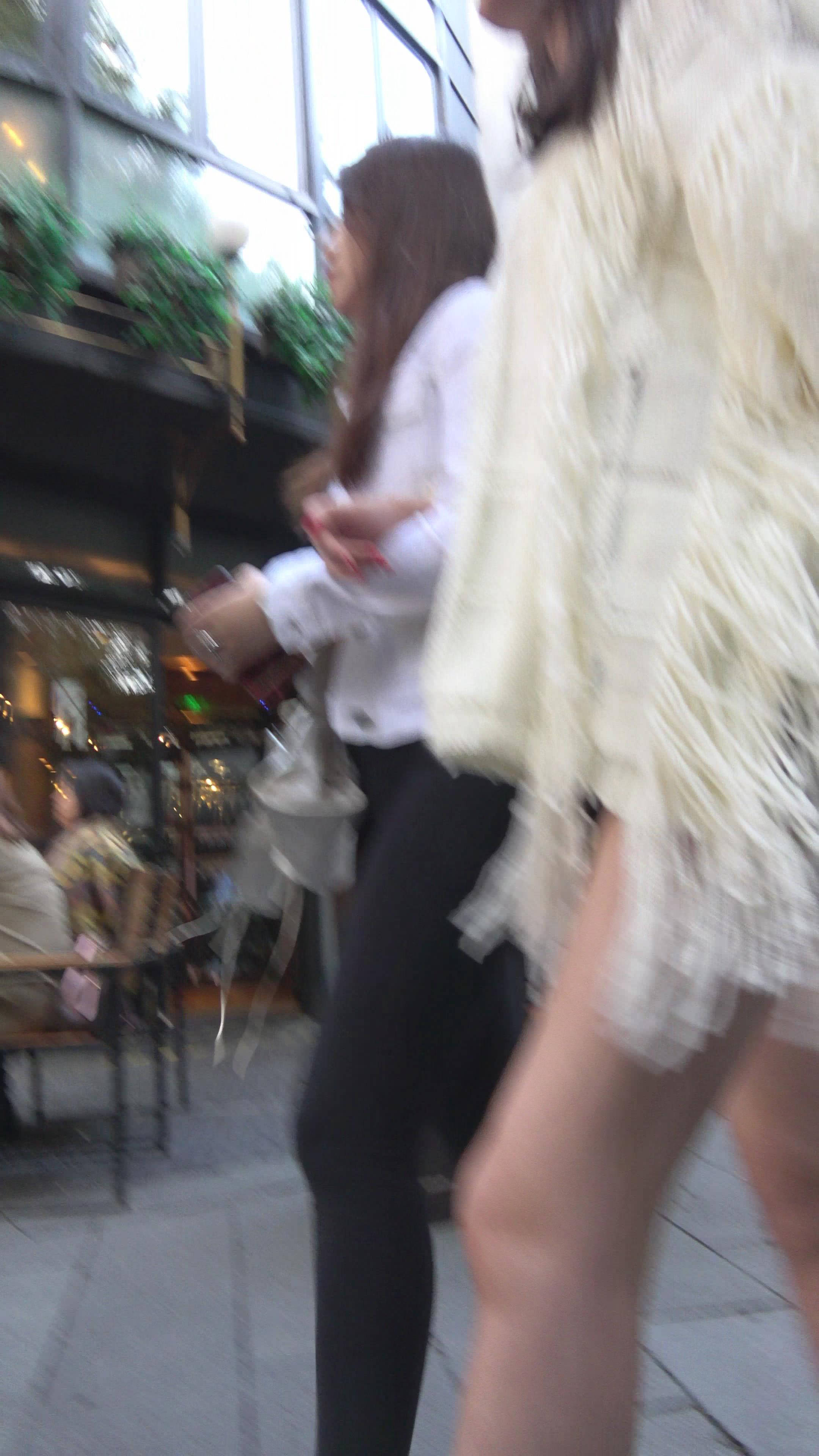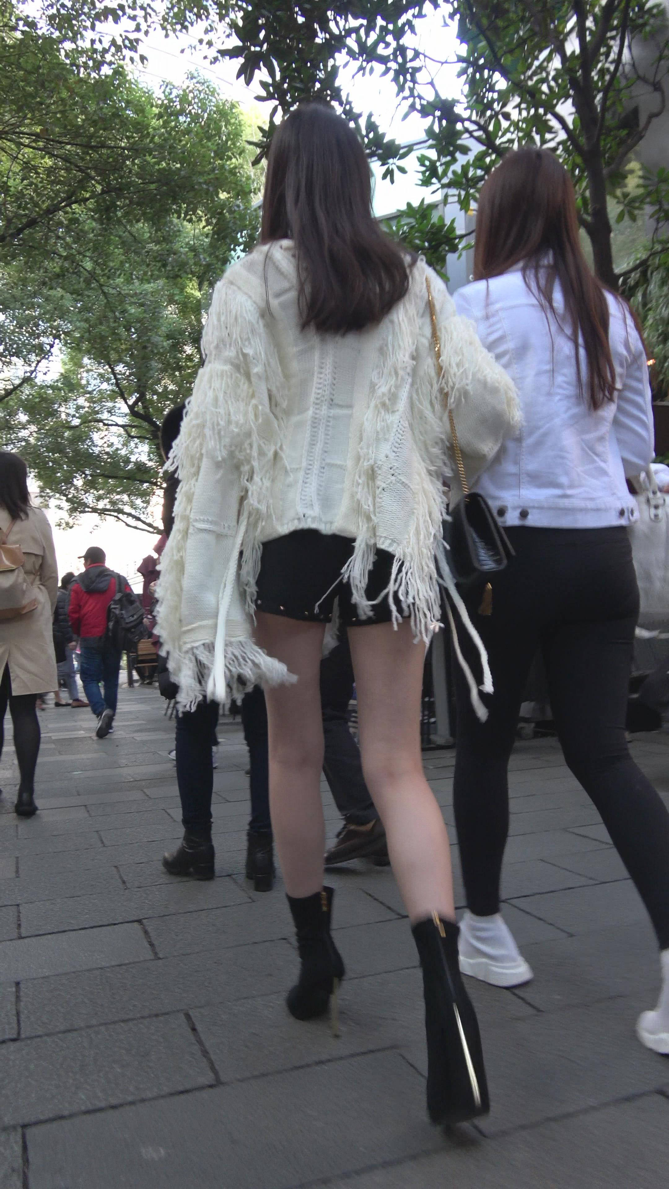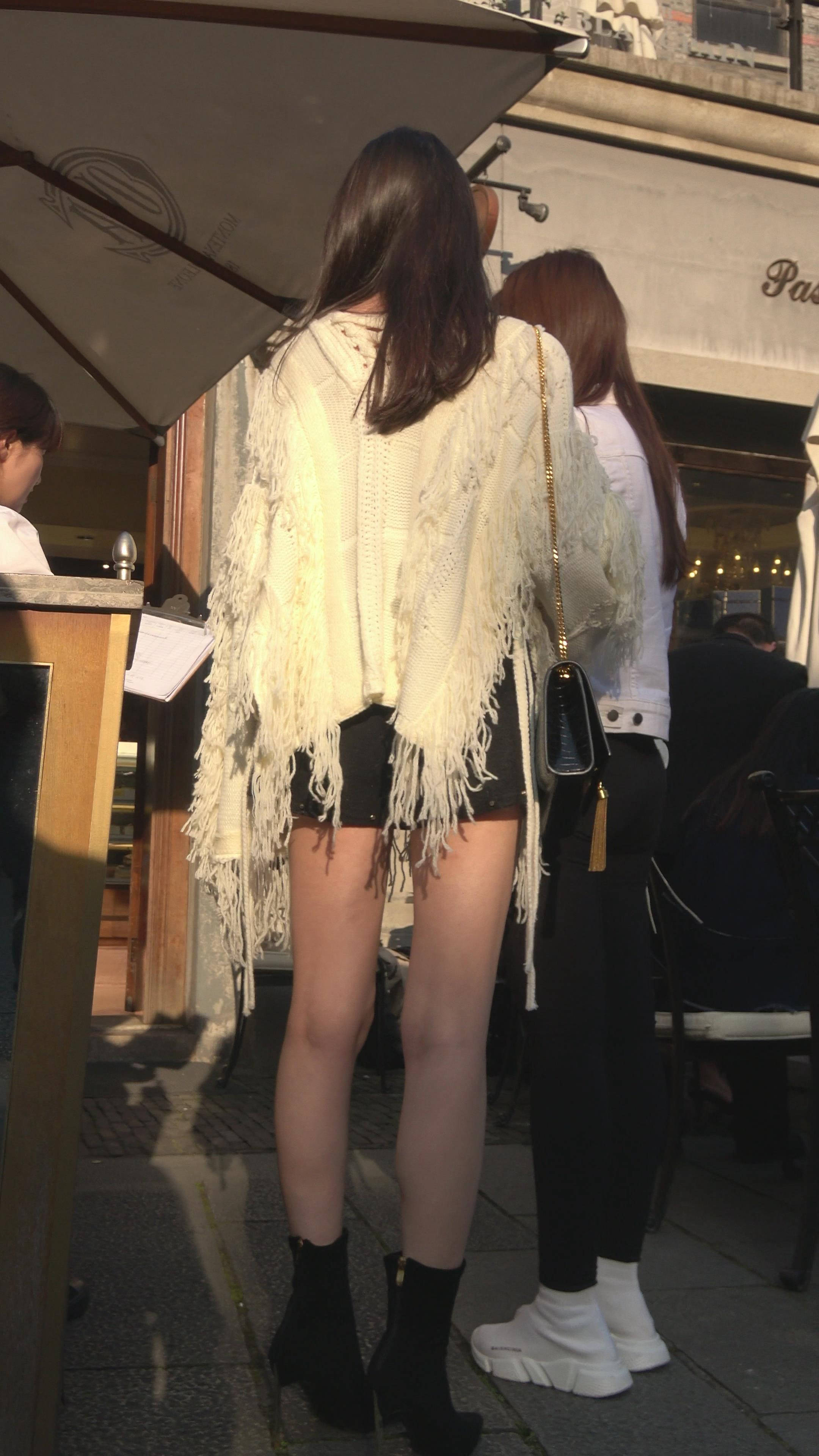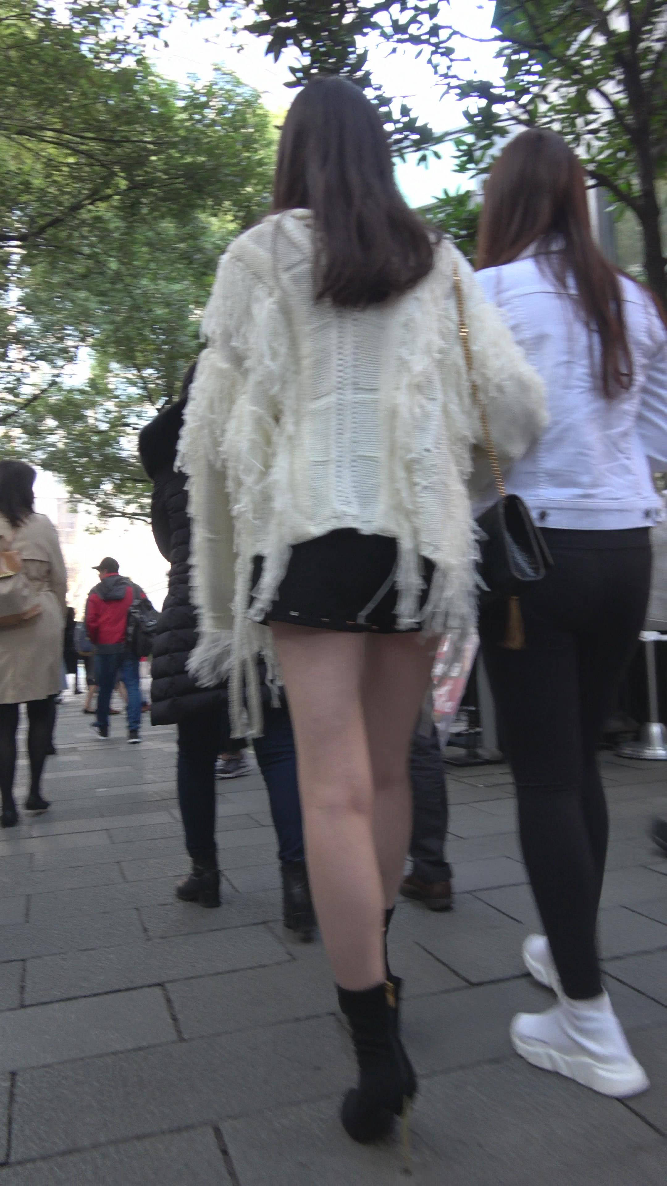 4K - 白色毛衣街拍性感美腿漂亮女神 编号7463