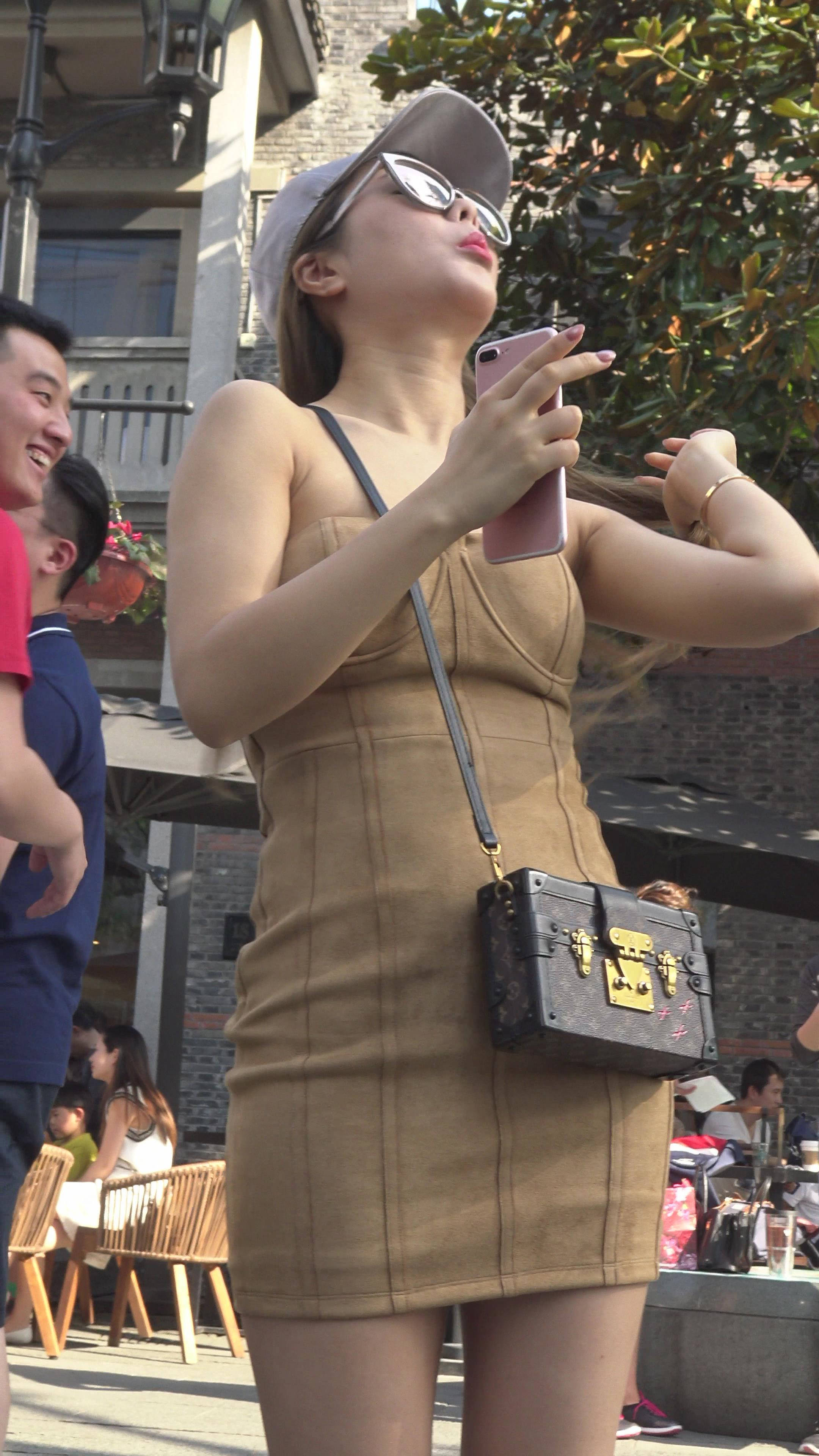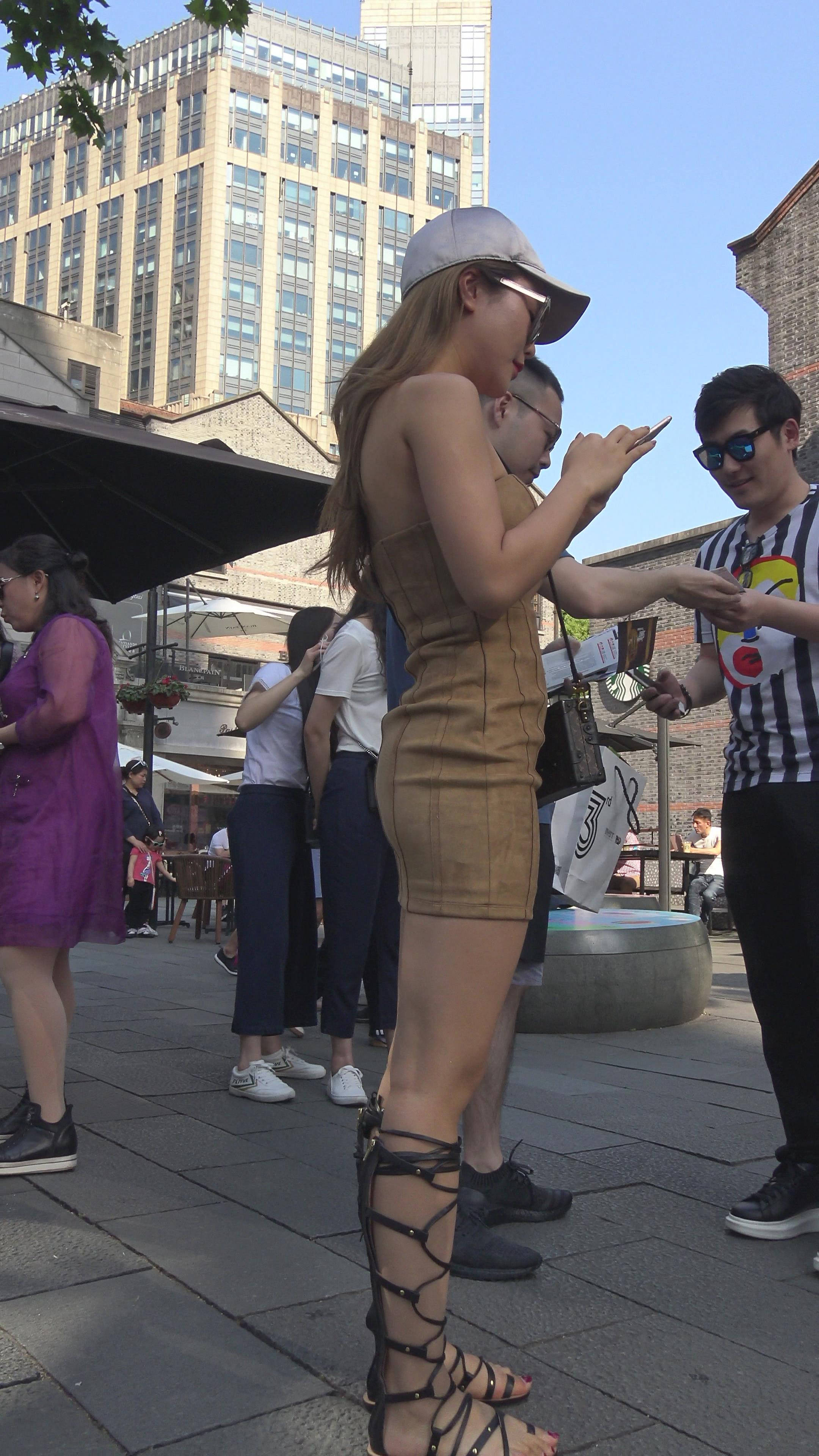 时尚的罗马鞋街拍紧身抹胸裙美女 编号7468